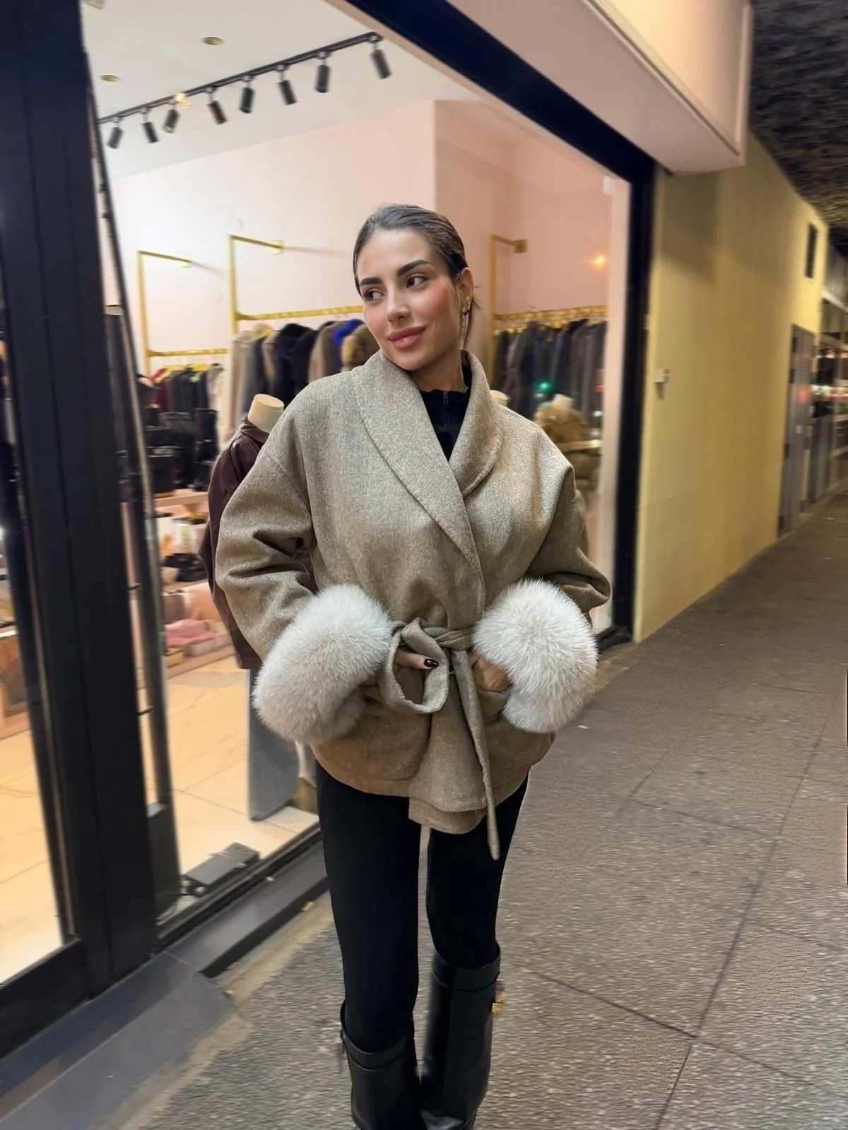 fabriqué en pur cachemire et orné de fourrure de renard de première qualité, ce manteau est une fusion de luxe et de chaleur. Profitez de la douceur et de la chaleur de la cachemire tout en étant élégant grâce à la touche de fourrure de renard.