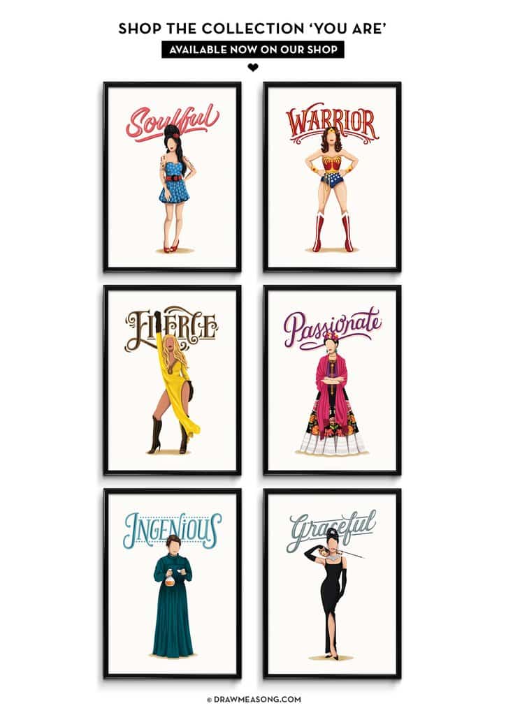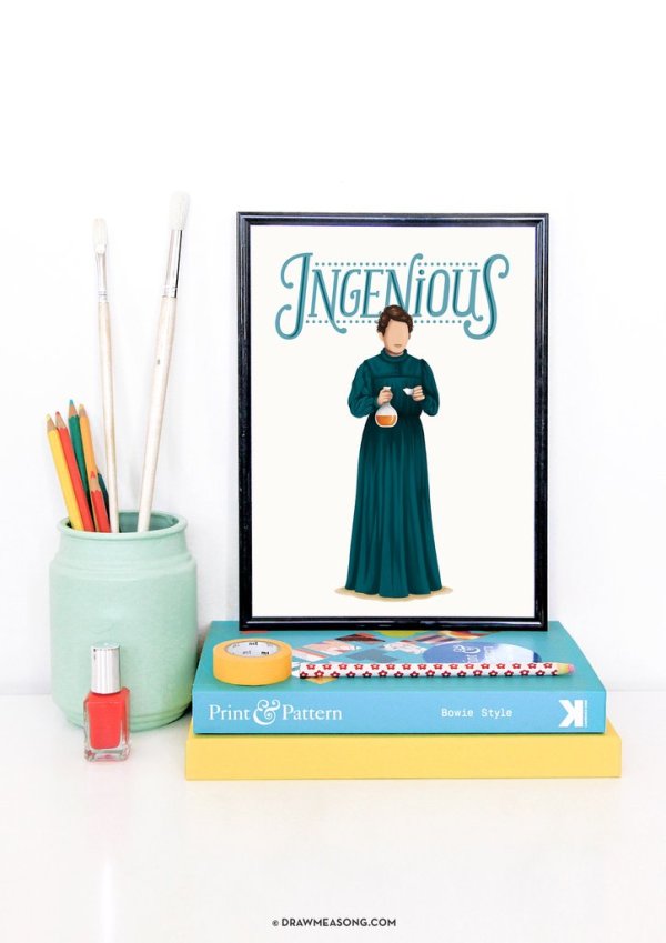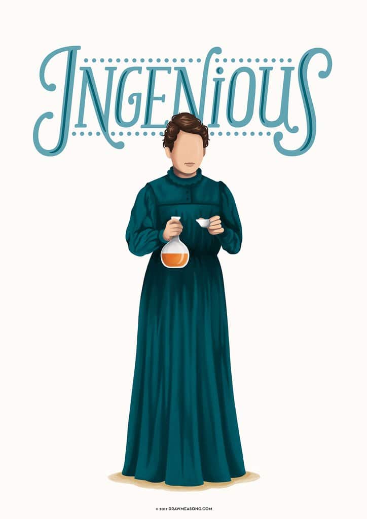 Etre déterminée et ambitieuse … comme Marie ! Affiche A4 Marie Curie Ingenious. (Vendue sans le cadre)