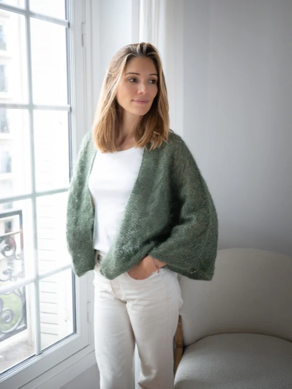 Gilet en mohair et soie, tricoté main – Esprit Dentelle Bohème