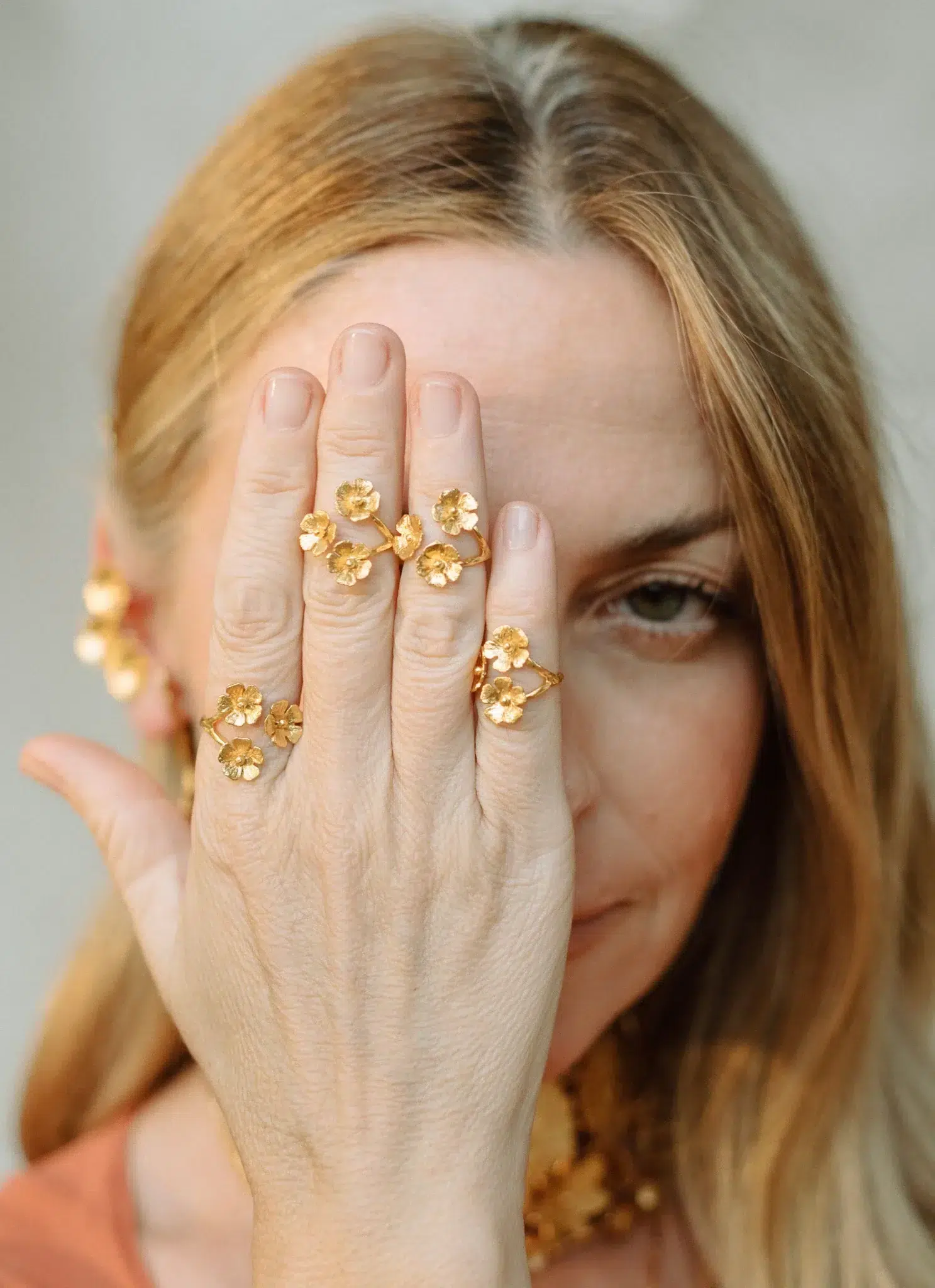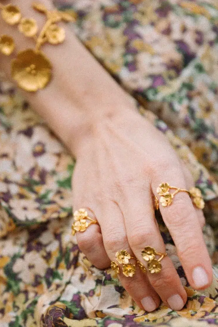 Bague dorée fleur, la délicatesse du printemps au bout des doigts