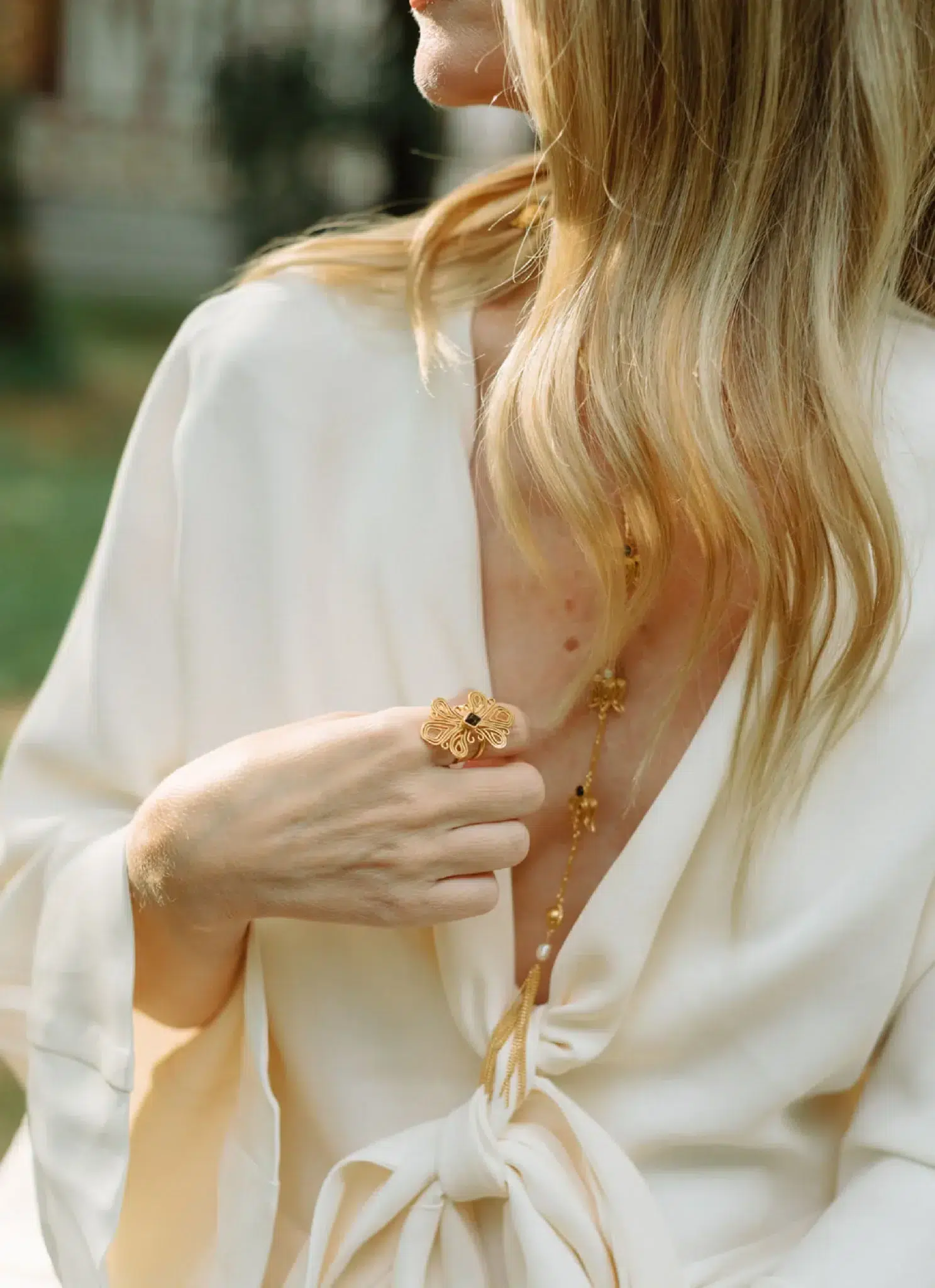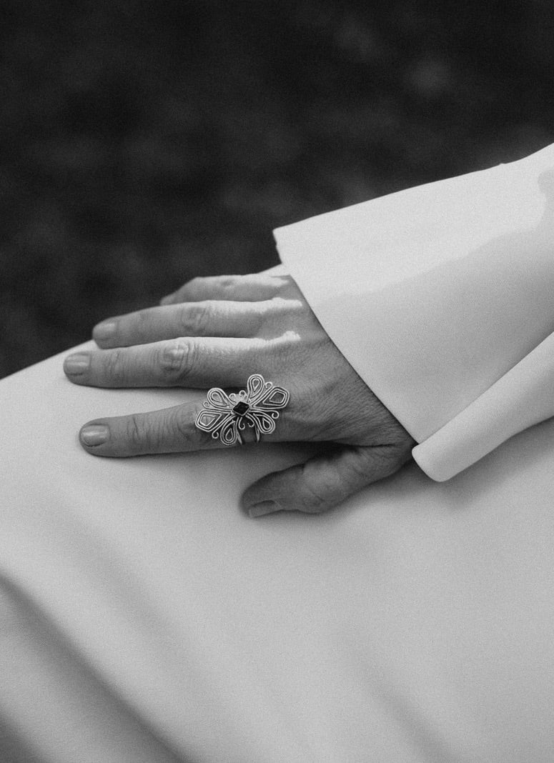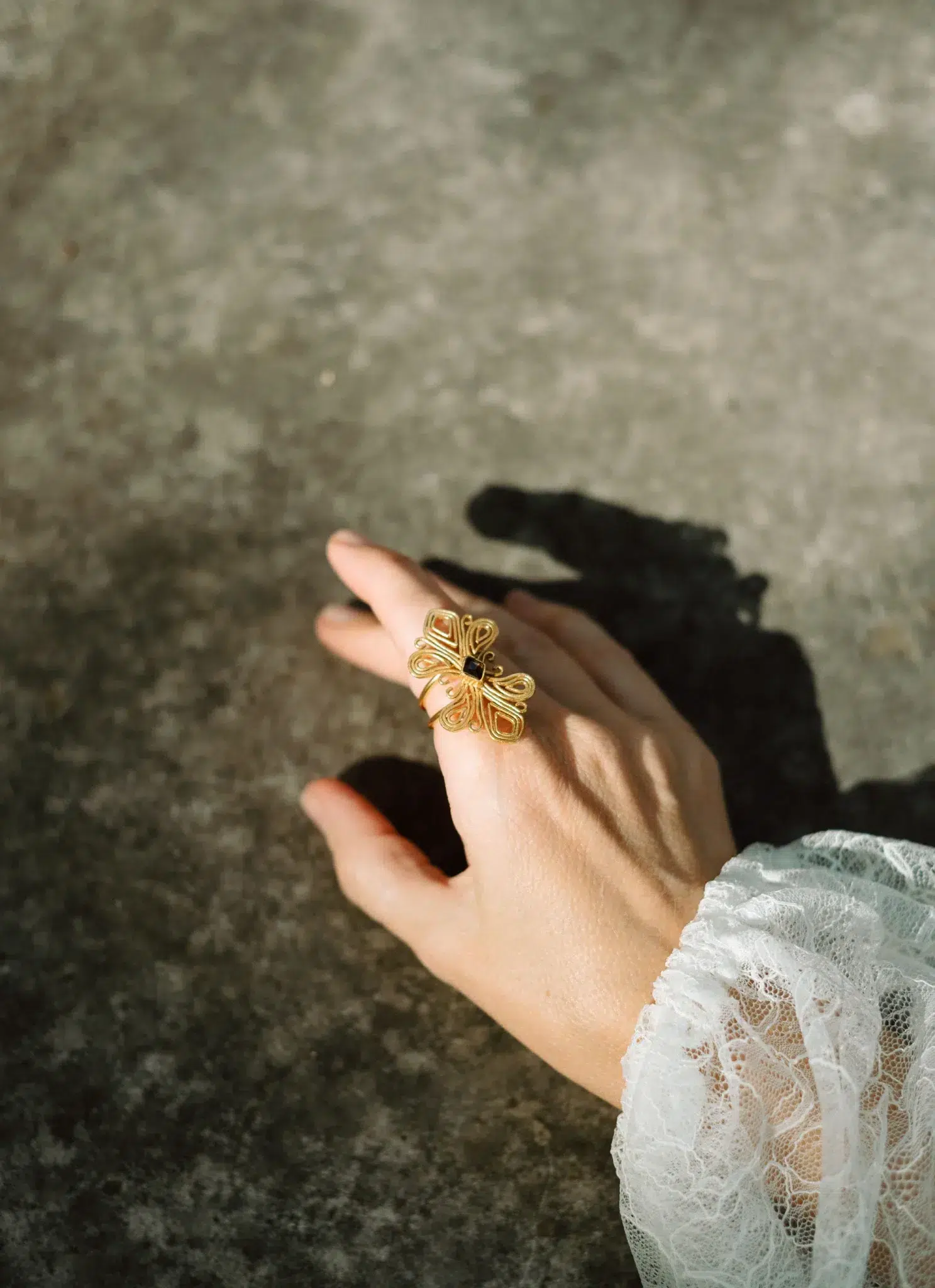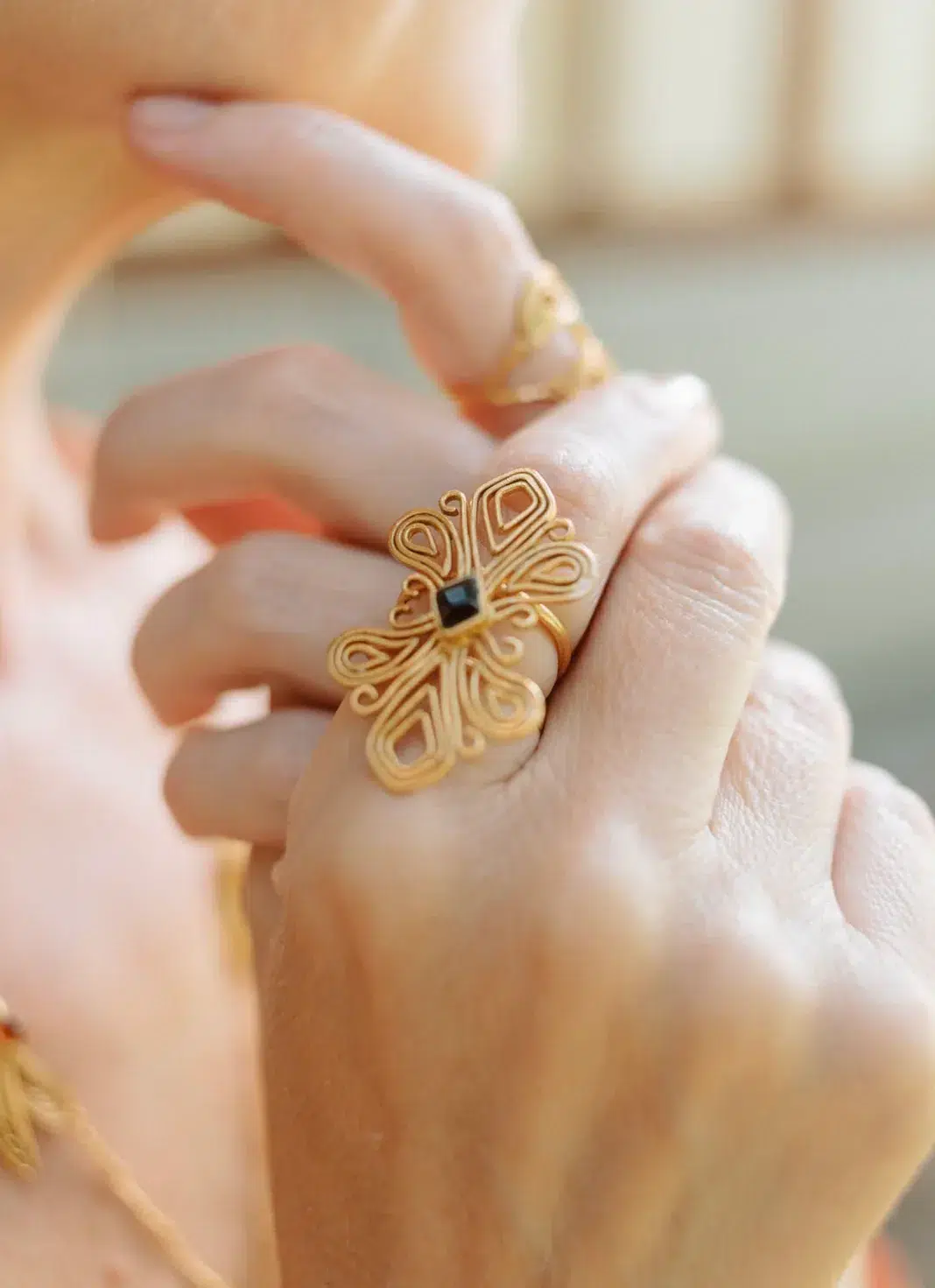 La collection Señora Victoriana d’Ikkelele célèbre l’alliance du métal et de la pierre. Ainsi, cette bague Jane Eyre associe le laiton doré au quartz fumé. Par conséquent, elle crée un bijou à la fois élégant et apaisant. De plus, elle vous accompagne au quotidien avec douceur.