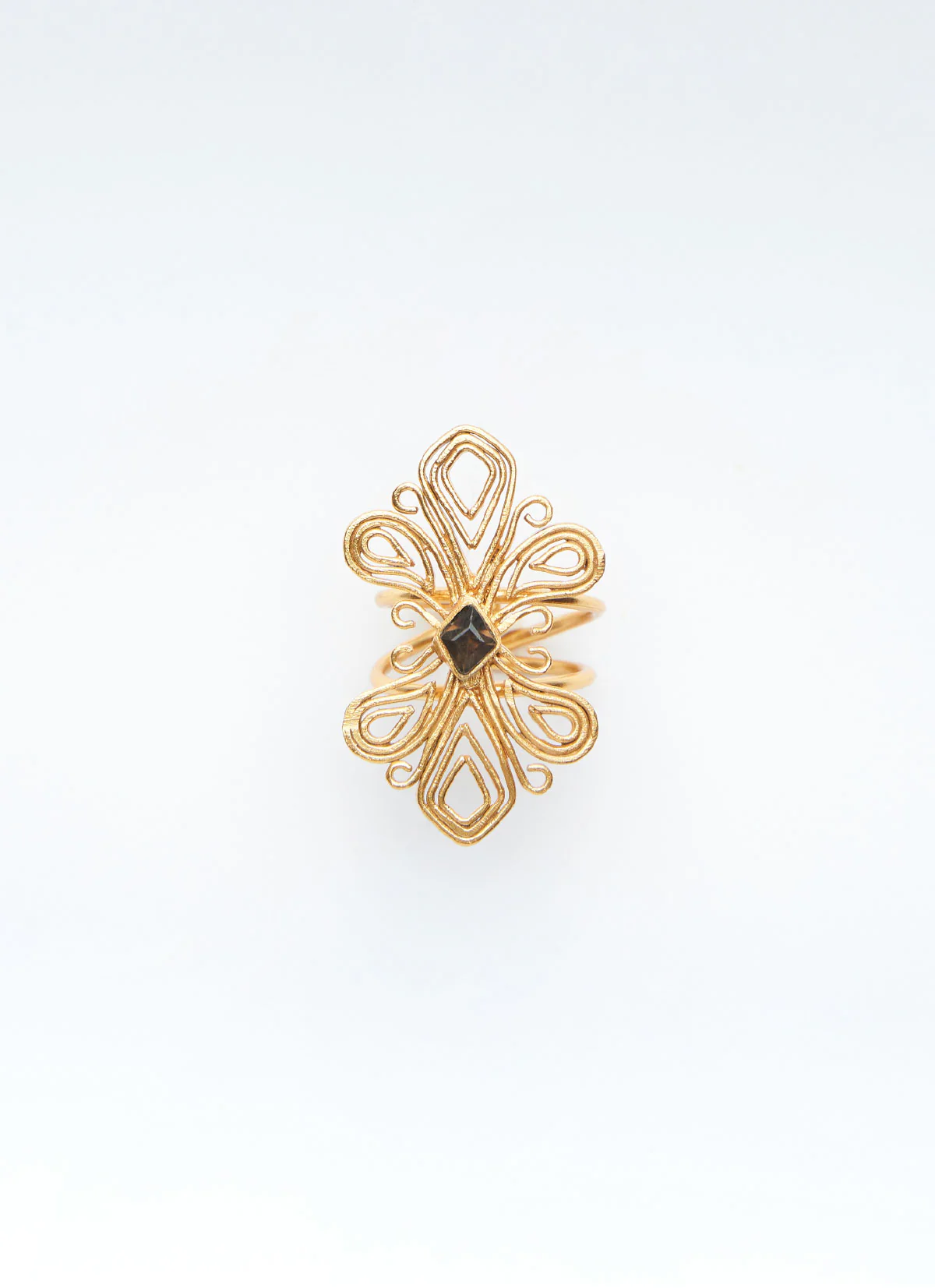 Bague dorée quartz fumé Jane Eyre | Ikkelele