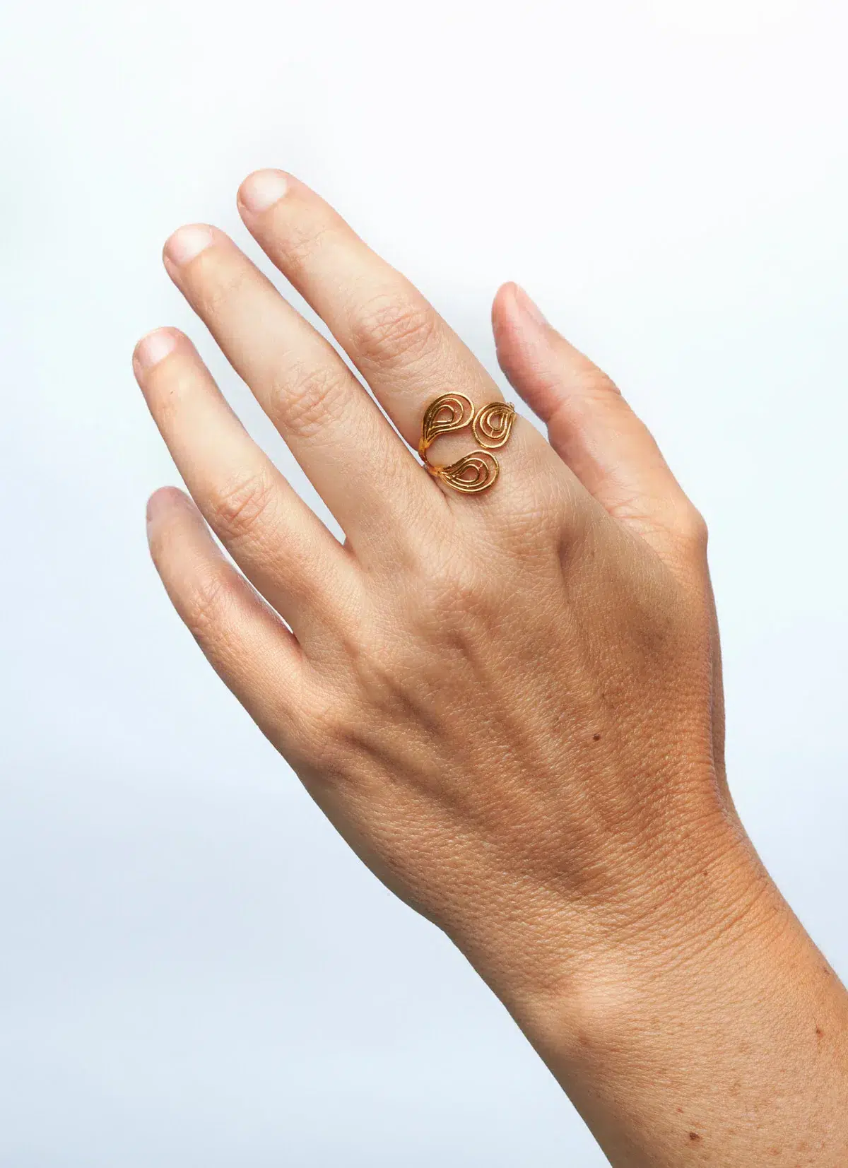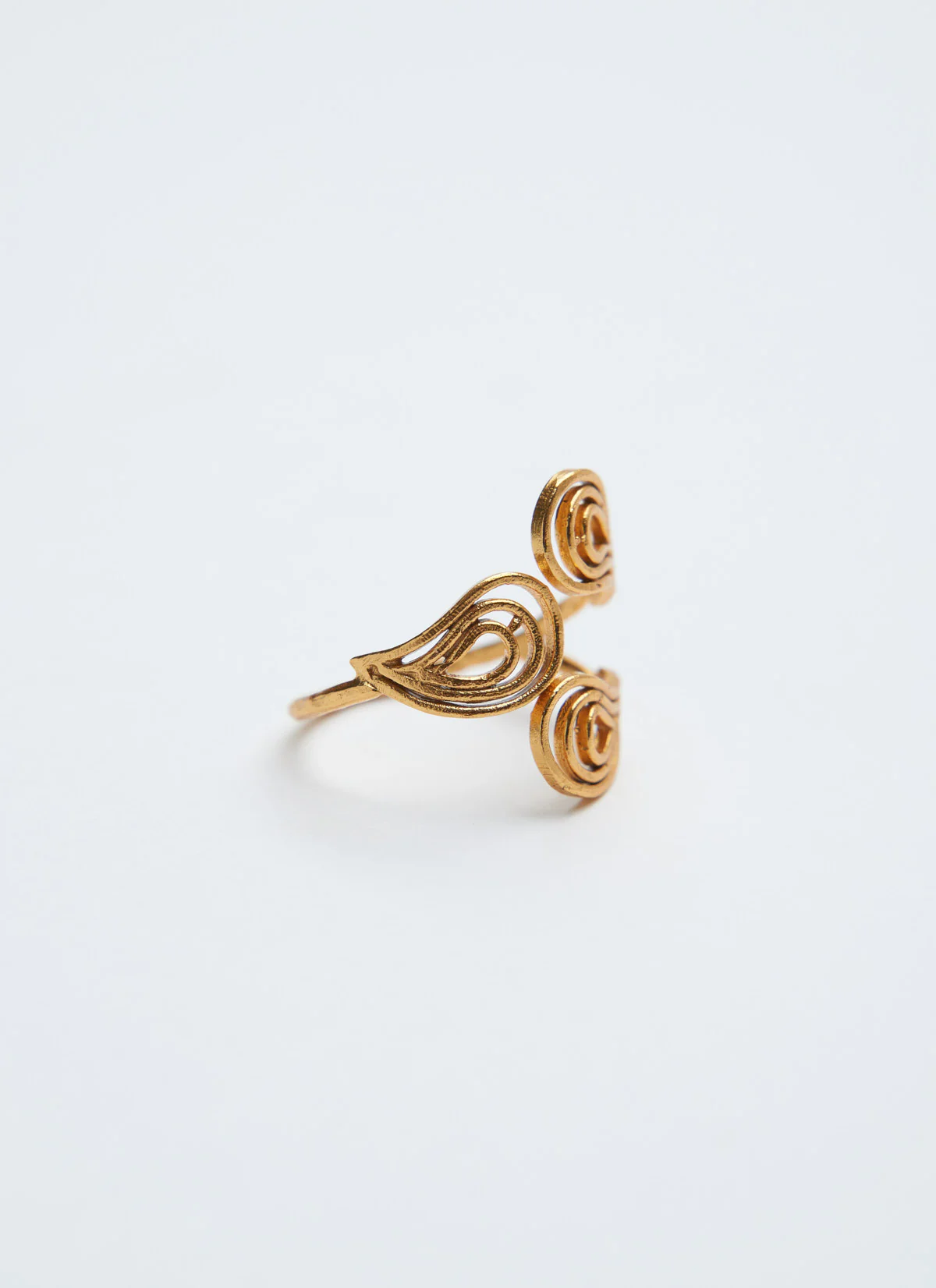 D’abord, elle est confectionnée en laiton doré à la main. Cette bague affiche un travail d’orfèvrerie délicat. Il s’inspire de l’ère victorienne. Ensuite, sans pierre, elle mise sur la pureté du métal. En effet, la finesse du design suffit. Le travail du laiton est remarquable.