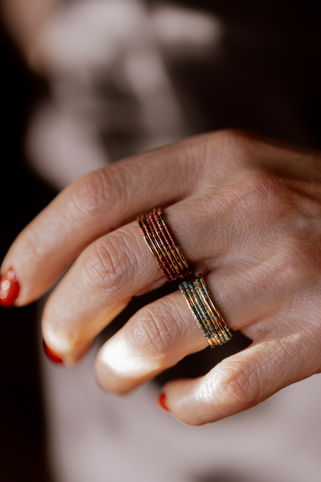 La bague Raccord, issue de la collection Les Tistrés, est une pièce unique inspirée du concept du Bijou-Portrait. Elle symbolise le passage de l’avant vers l’après, mettant en lumière le processus de transformation et de reconstruction. Composée de 6 anneaux indépendants, chaque bague est reliée par un fil de broderie, créant une pièce distincte à chaque exemplaire. Tout comme chaque cicatrice est unique, chaque broderie l’est également, faisant de chaque bague un témoin personnalisé de résilience et de renouveau. Un bijou artisanal qui incarne à la fois l’élégance et original.