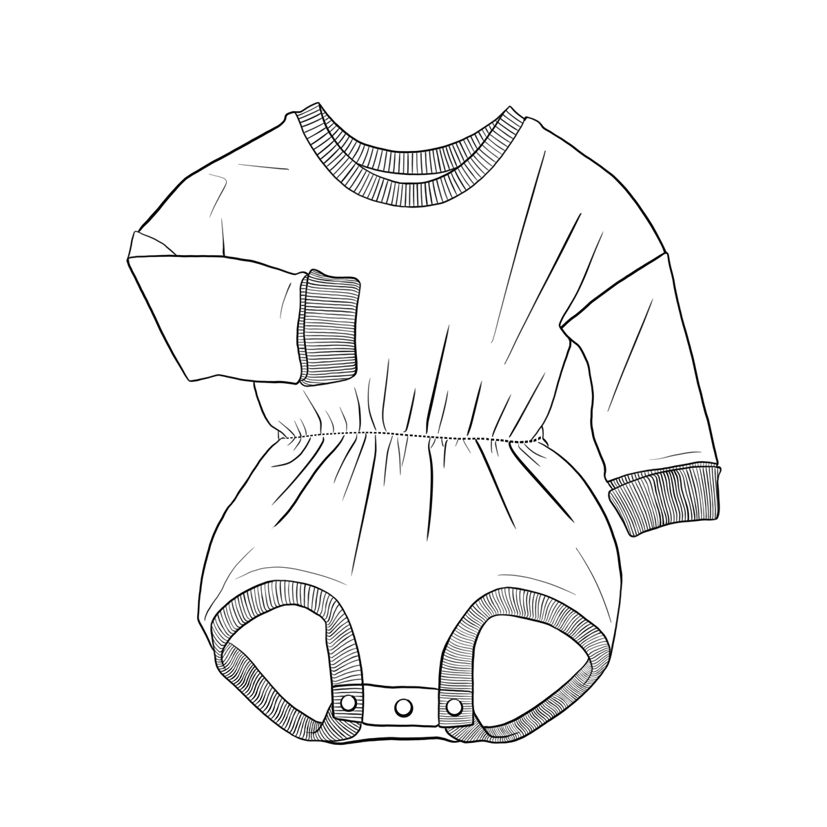 Se ferme avec des pressions à l’entrejambe. Manches courtes ou longues, au choix.