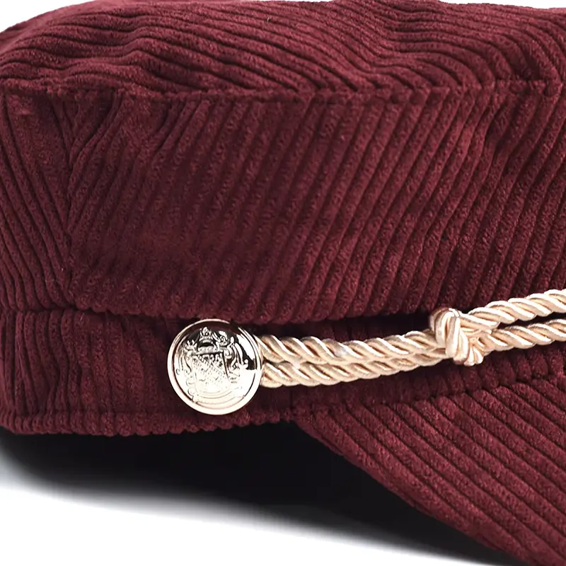 Béret Casquette Gavroche Femme Velours Côtelé Bordeaux