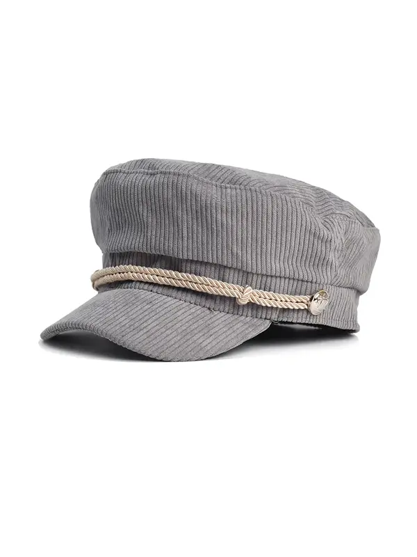 Béret Casquette Gavroche Femme Velours Côtelé Grise