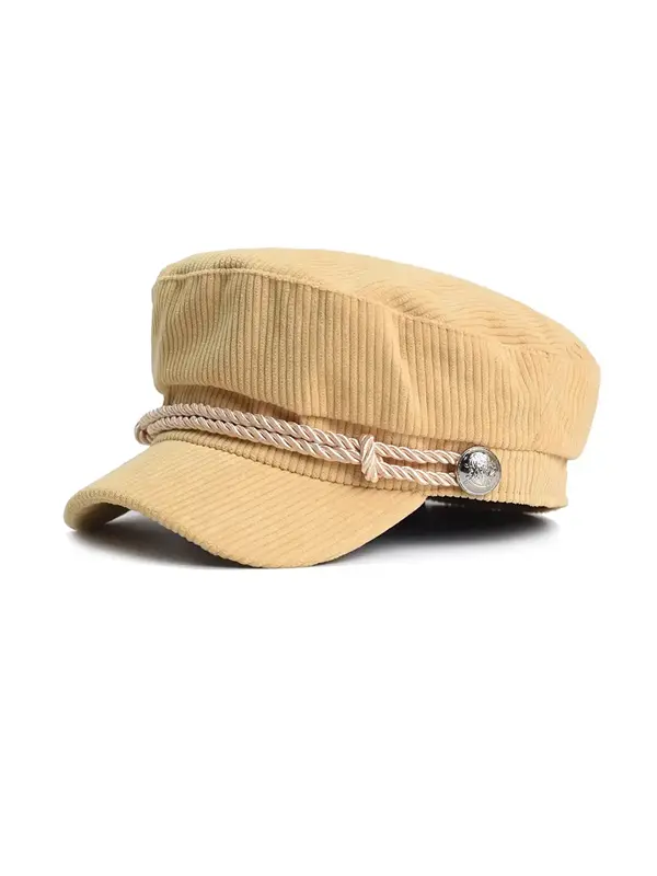 Béret Casquette Gavroche Femme Velours Côtelé Jaune