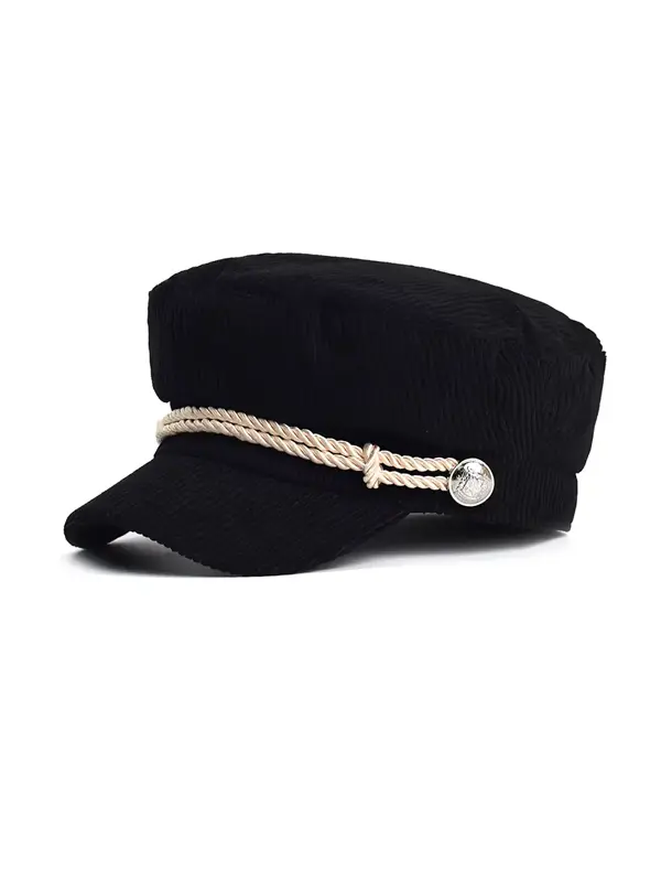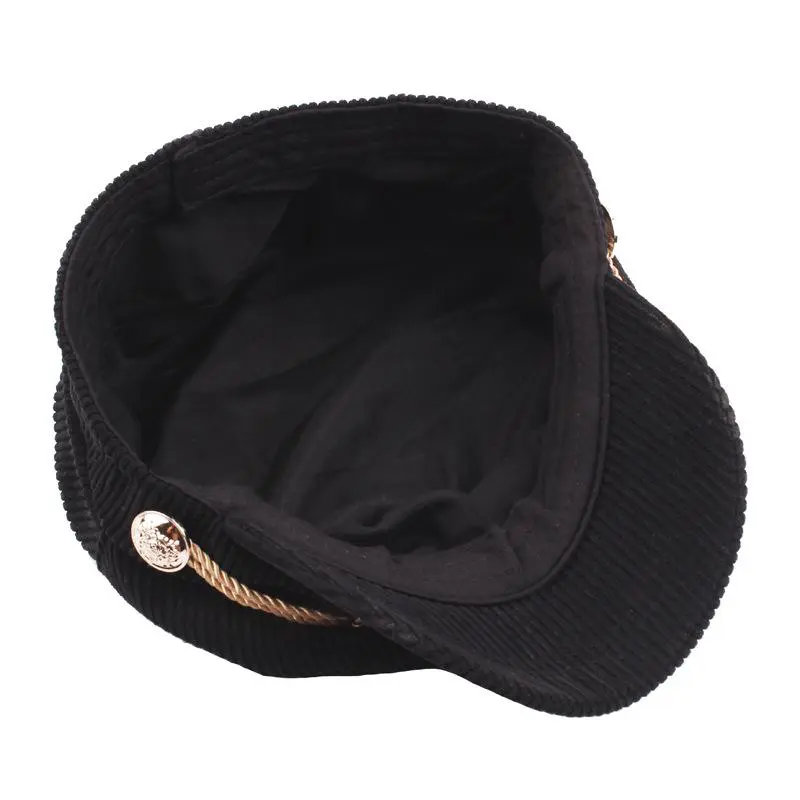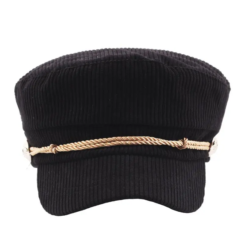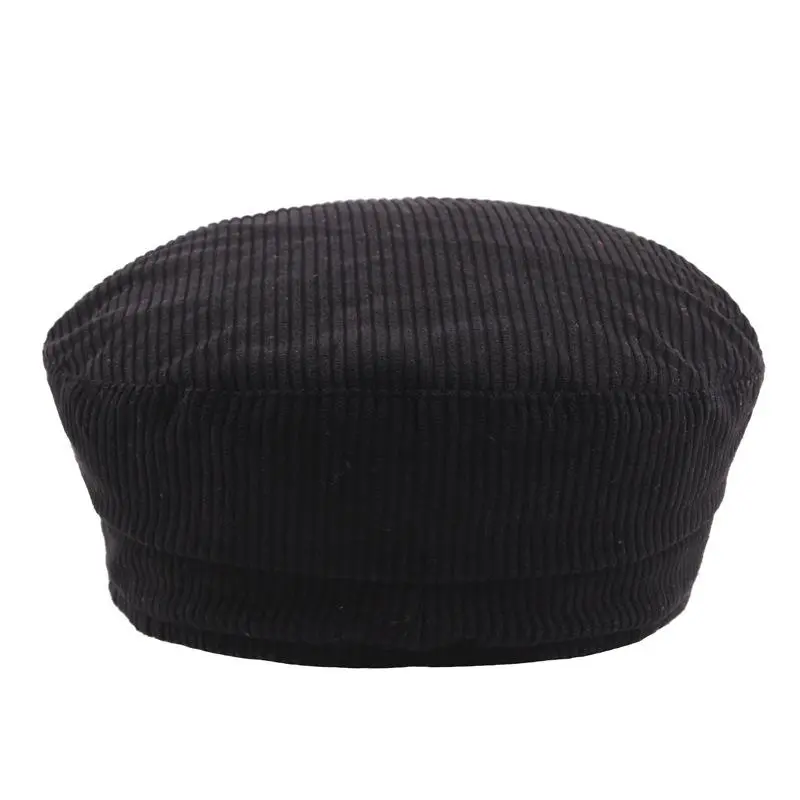 Béret Casquette Gavroche Femme Velours Côtelé Noir