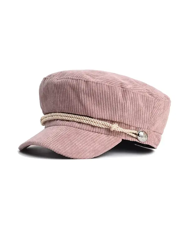 Béret Casquette Gavroche Femme Velours Côtelé Rose
