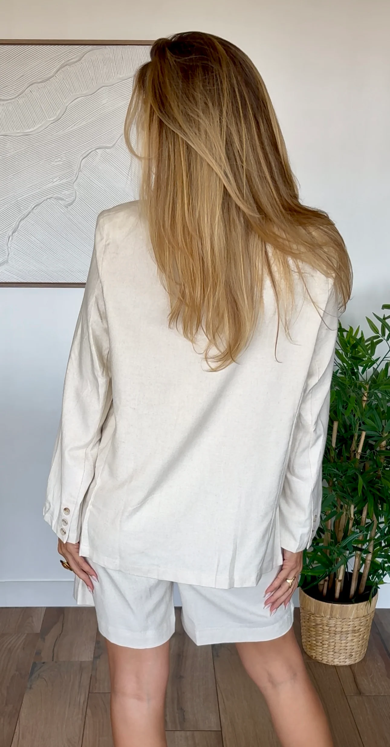 Découvrez notre veste écrue élégante, un incontournable pour toute garde-robe moderne. Parfaite pour compléter vos tenues, cette pièce allie sophistication et confort, idéale pour toutes les occasions.
