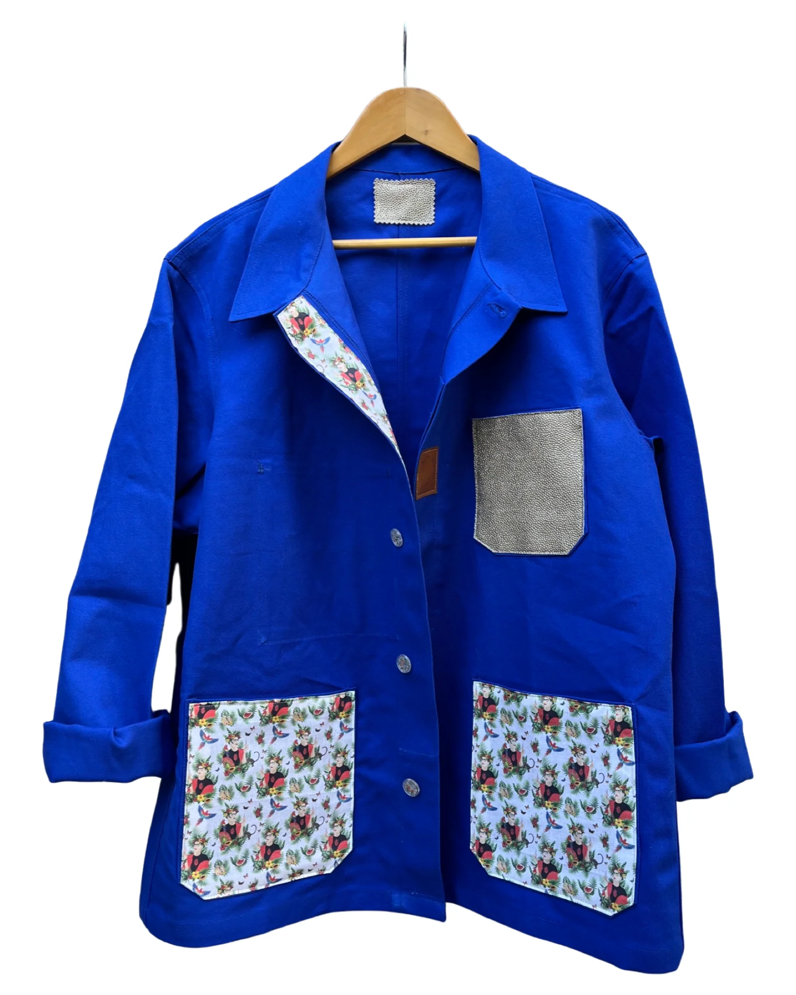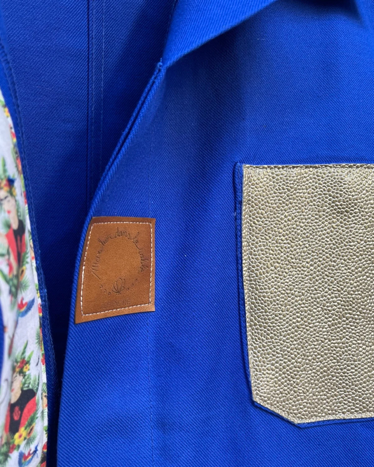 VESTE BLEU DE TRAVAIL WAX Description et entretien : – Véritable Veste de Travail 100% Coton Bleu Bugatti.– Tissu blanc Frida Tropical 100% Coton.– Jacron logo simili cuir fabrication française.– Poche Simili Cuir Doré.– Boutons en verre vintage fleuris.Ce modèle convient pour une taille XL/XXL.Convient également pour un L pour un look un peu plus […]