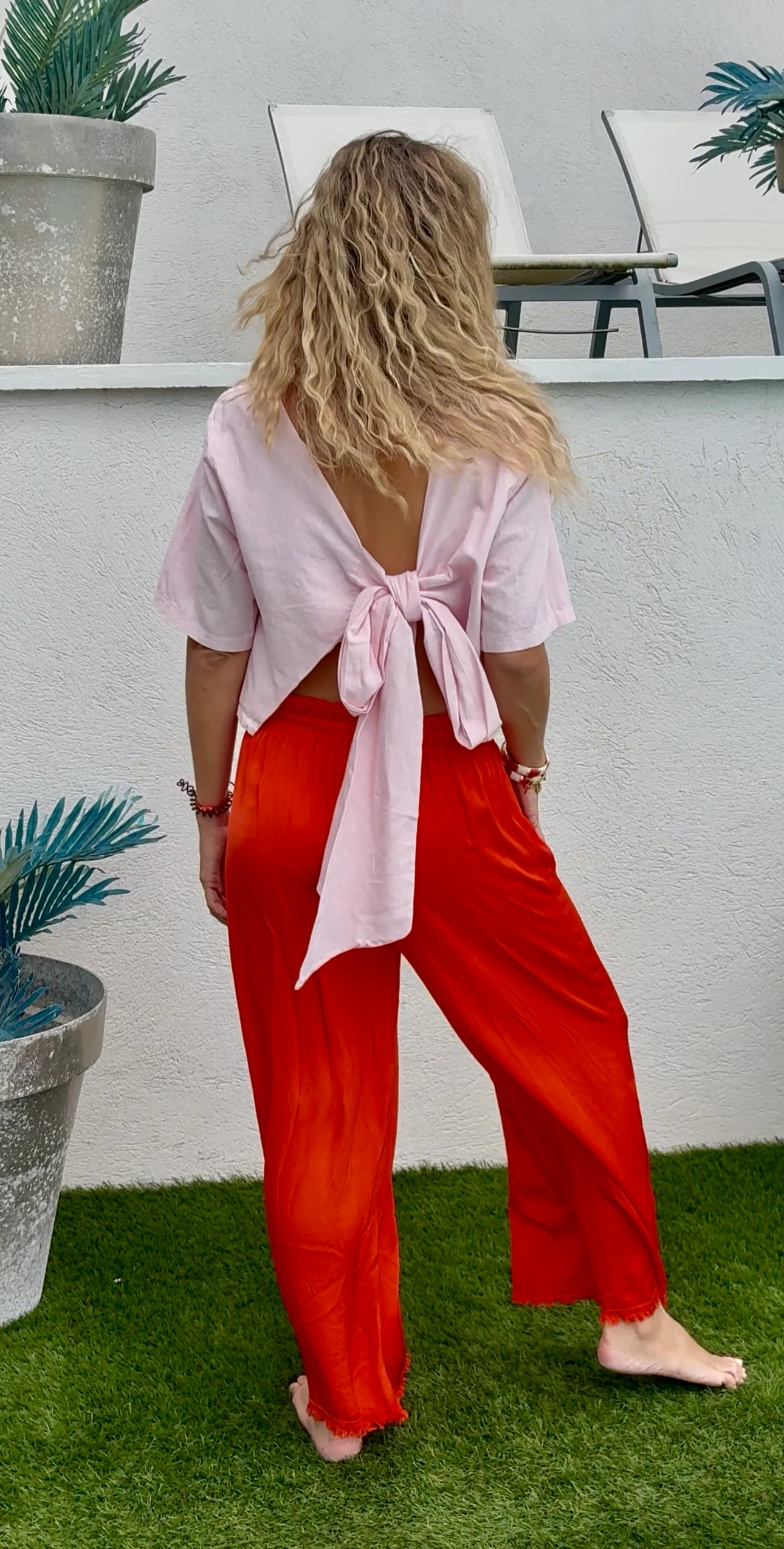 Cette blouse élégante en lin et coton est disponible en trois couleurs vibrantes : rose, jaune et blanc. Avec son design dos nu et ses nœuds stylés, elle offre une allure à la fois décontractée et chic. Fabriquée en Italie, cette pièce légère et respirante est parfaite pour les journées ensoleillées et les soirées d’été. La taille unique convient aux tailles 36 à 42, garantissant un ajustement confortable pour toutes les silhouettes.