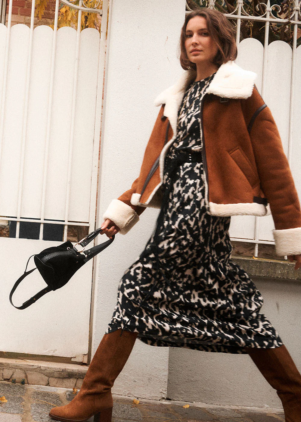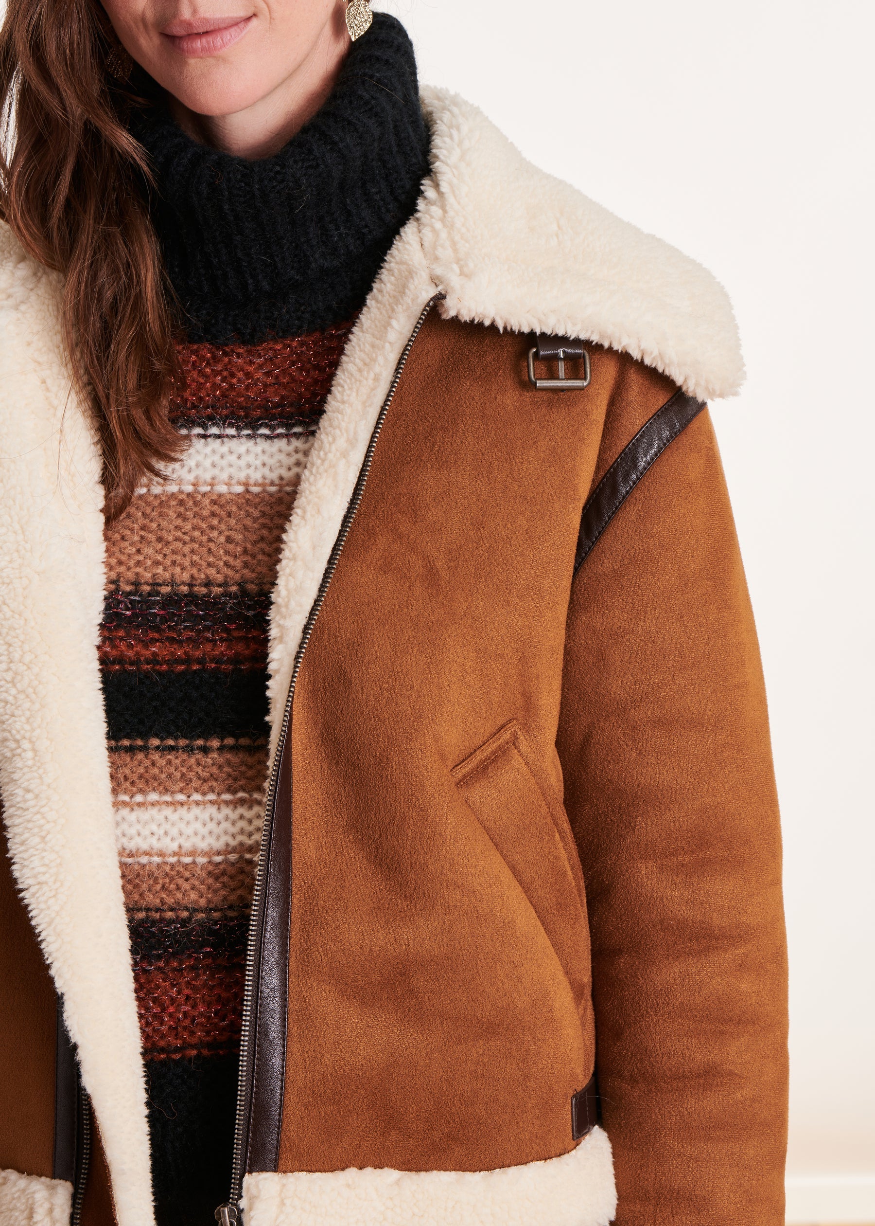 Blouson bomber fourré terracotta à zip