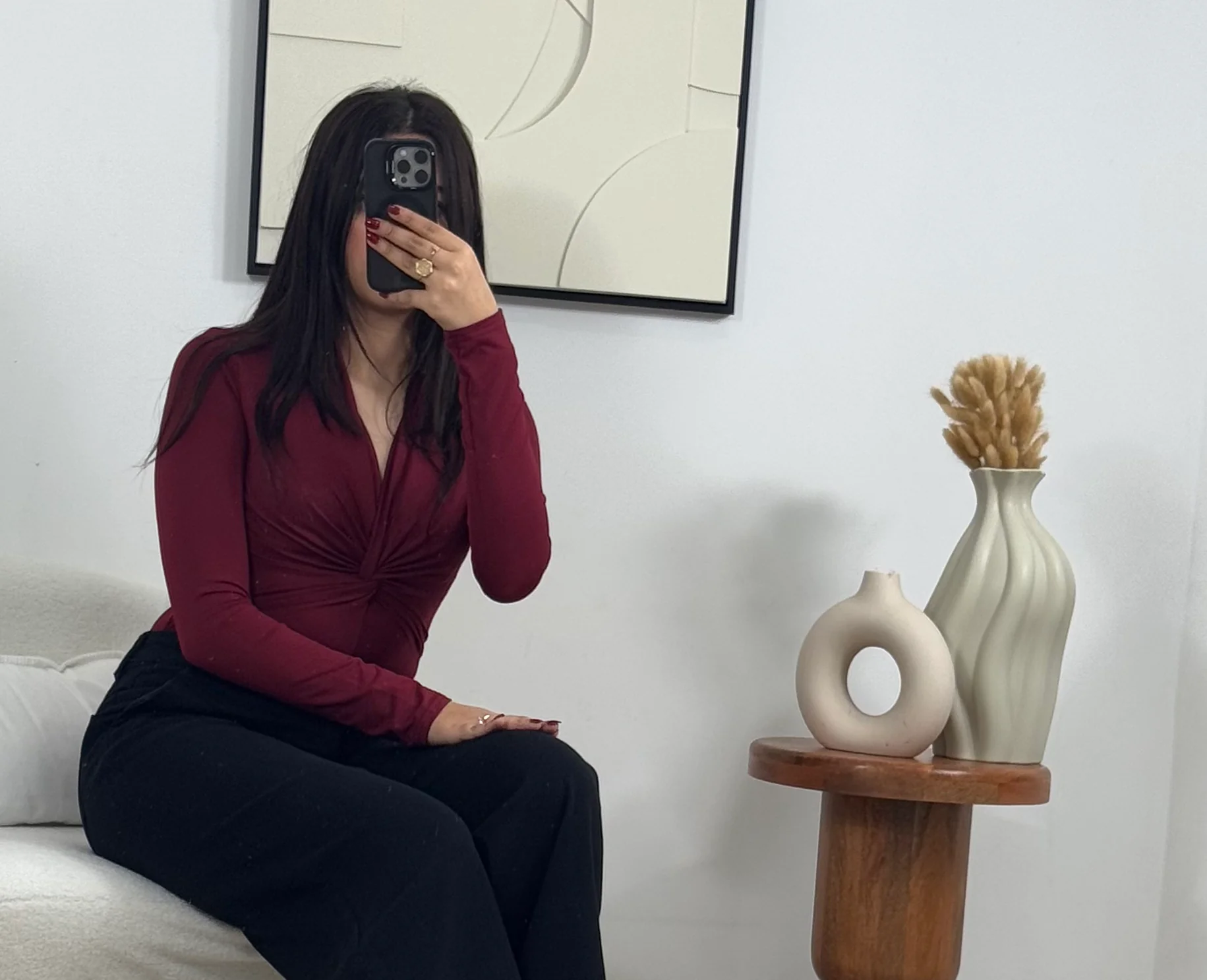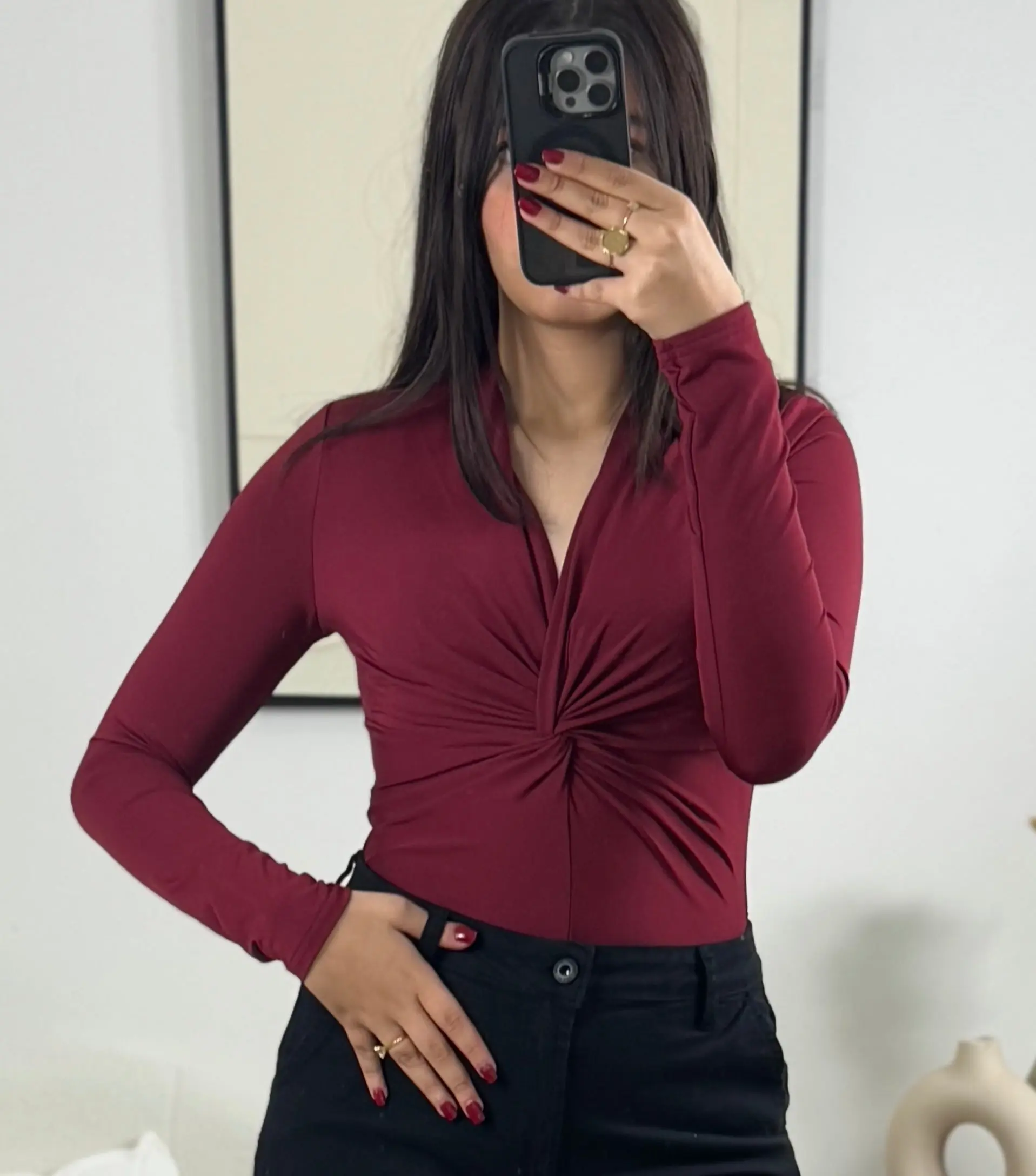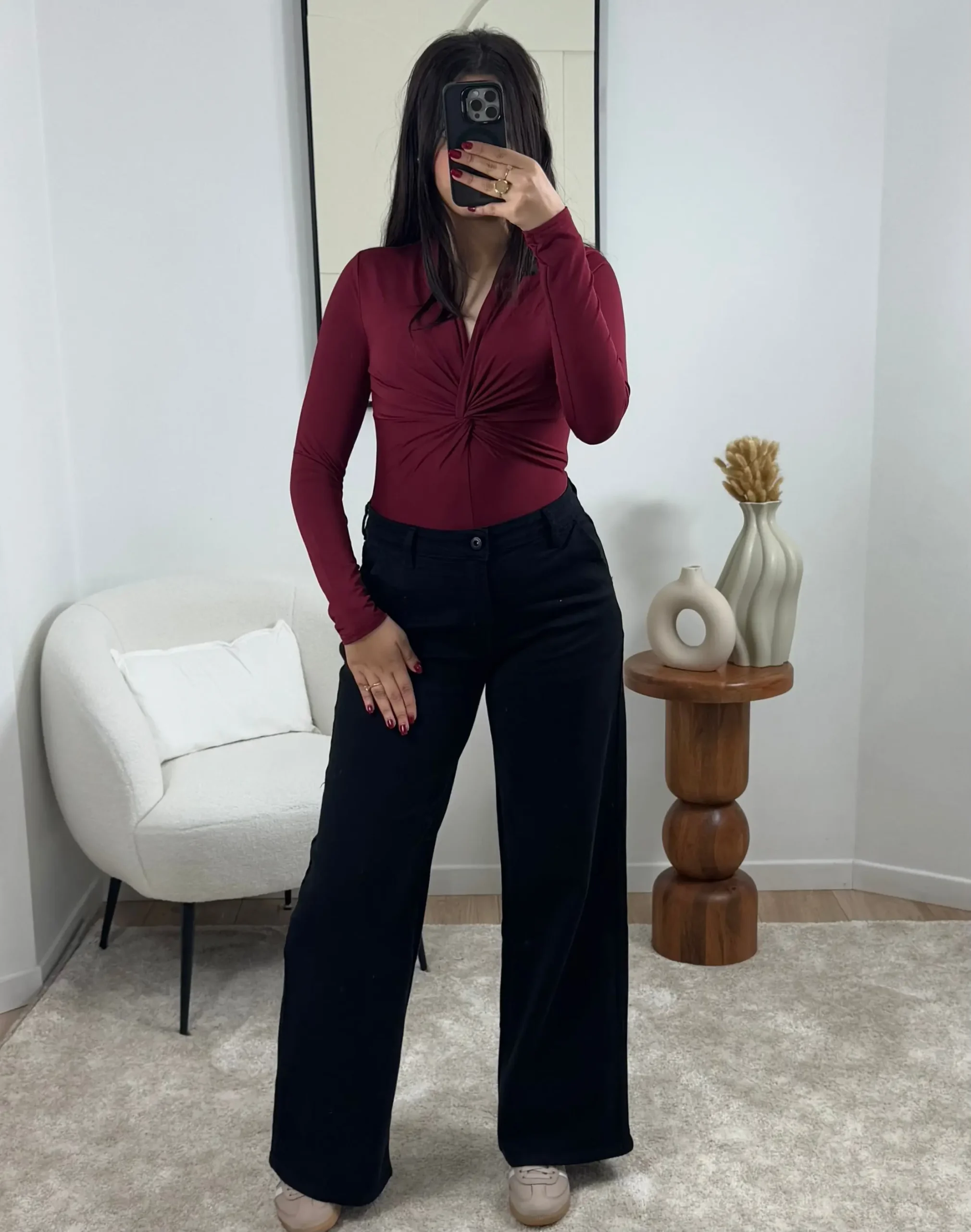 DESCRIPTION : • Body moulant froncé • Couleur : Bordeaux • Col en V pour une touche d’élégance et de féminité • Se ferme par des boutons-pression à l’entrejambe • Disponible dans d’autres couleurs pour s’adapter à tous les styles Le modèle mesure 1,68 m et porte une taille S/M COMPOSITION : 65% viscose 30% […]