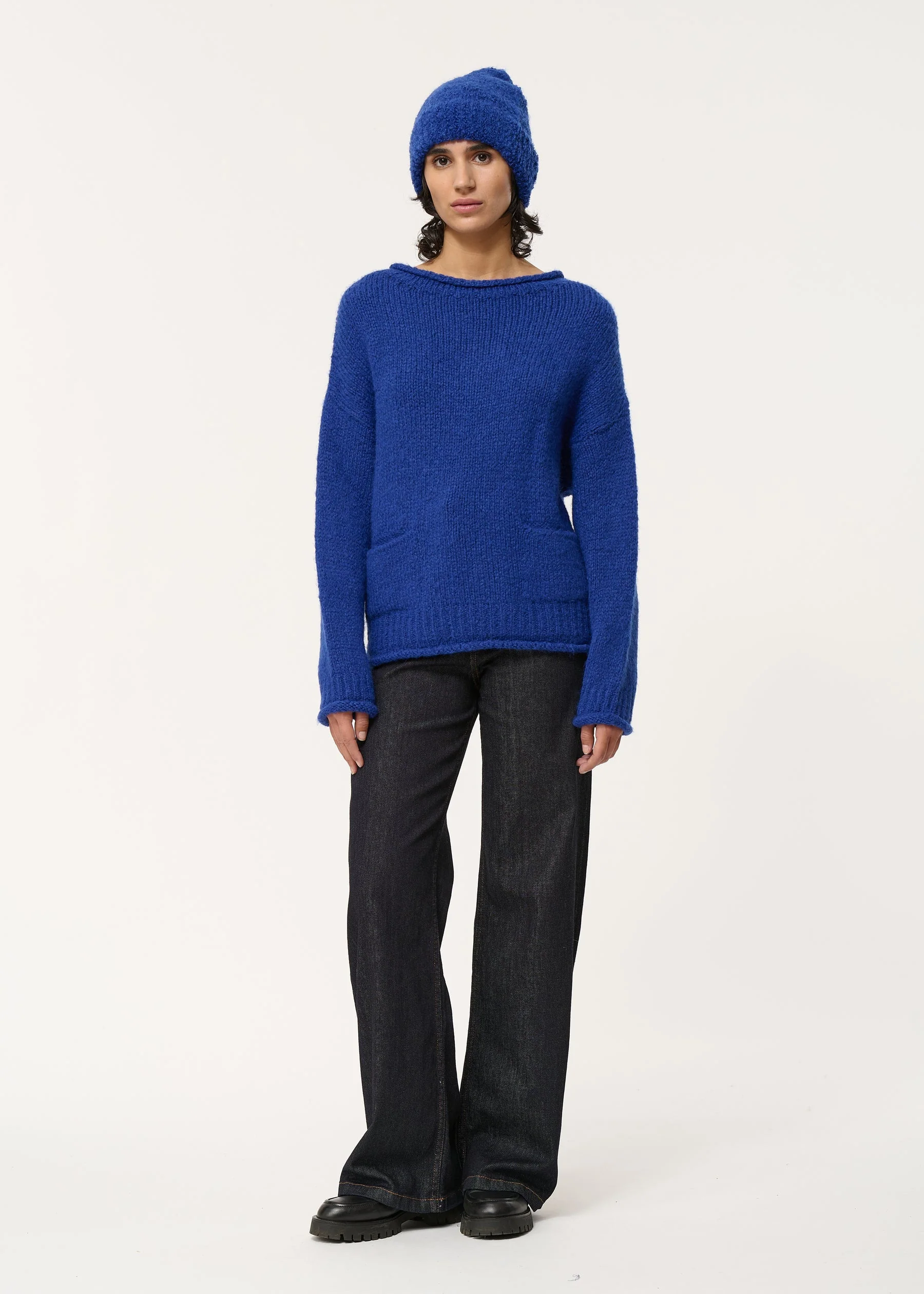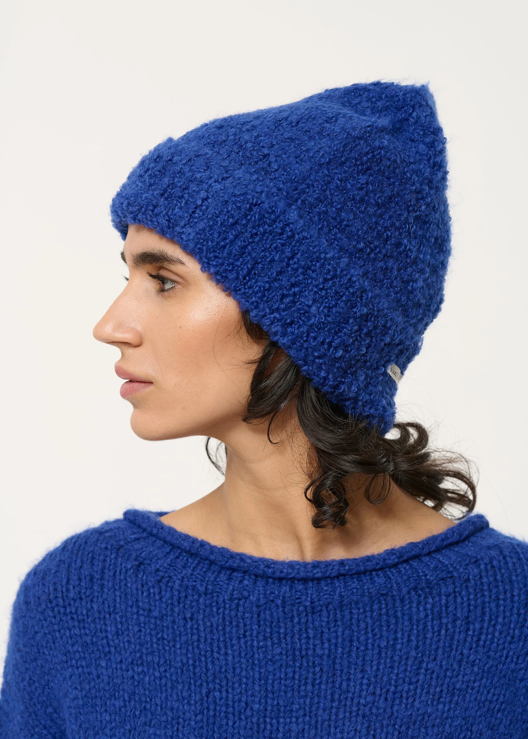 Bonnet bleu en maille mousseuse épaisse