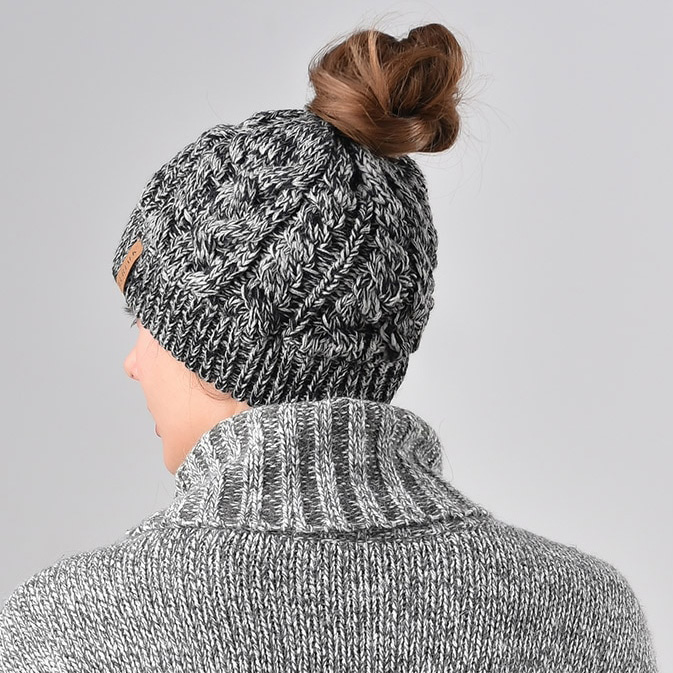 Le Bonnet Ponytail Tricot, est idéal en hiver. Il vous permet d’avoir chaud à la tête tout en gardant votre coiffure impeccable. Fini les cheveux en bataille !