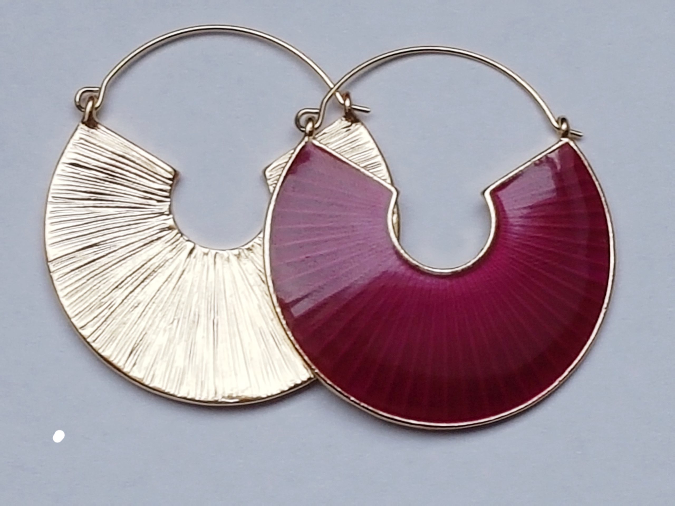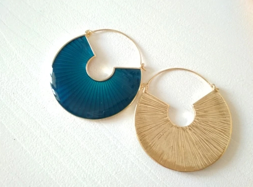 Charmantes, stylisées et élégantes, les boucles d’oreilles créoles Satine sont recouvertes d’émail sur une face. Sous l’émail, les boucles d’oreilles sont plissées donnant de la profondeur à ce bijou. Le côté opposé est également strié mais en relief créant un joli aspect. Cet accessoire original peut-être porté des deux côtés selon votre humeur. Les couleurs intenses et profondes ainsi que la forme originale en font un bijou d’exception.