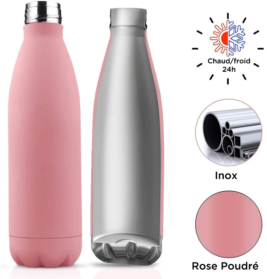 - Bonne étanchéité : Conception spéciale anti-fuites et totalement hermétique pour son bouchon. votre bouteille isotherme inox rose est facilement transportable dans votre sac à main, aucune fuite à prévoir.