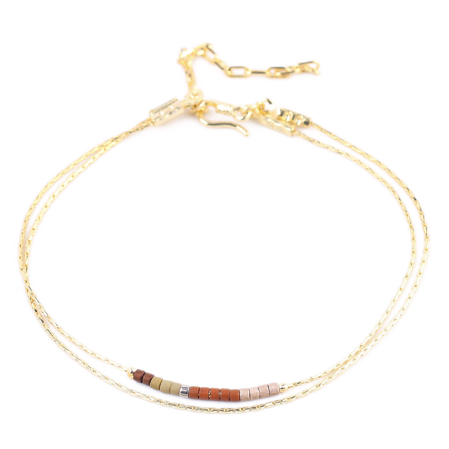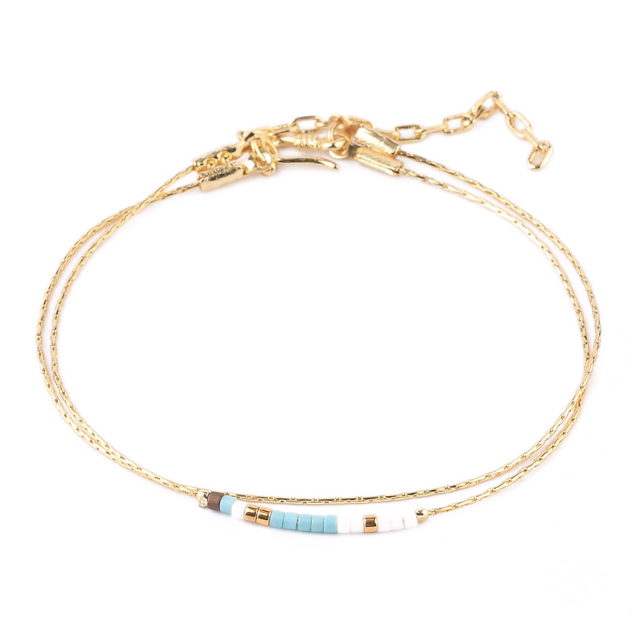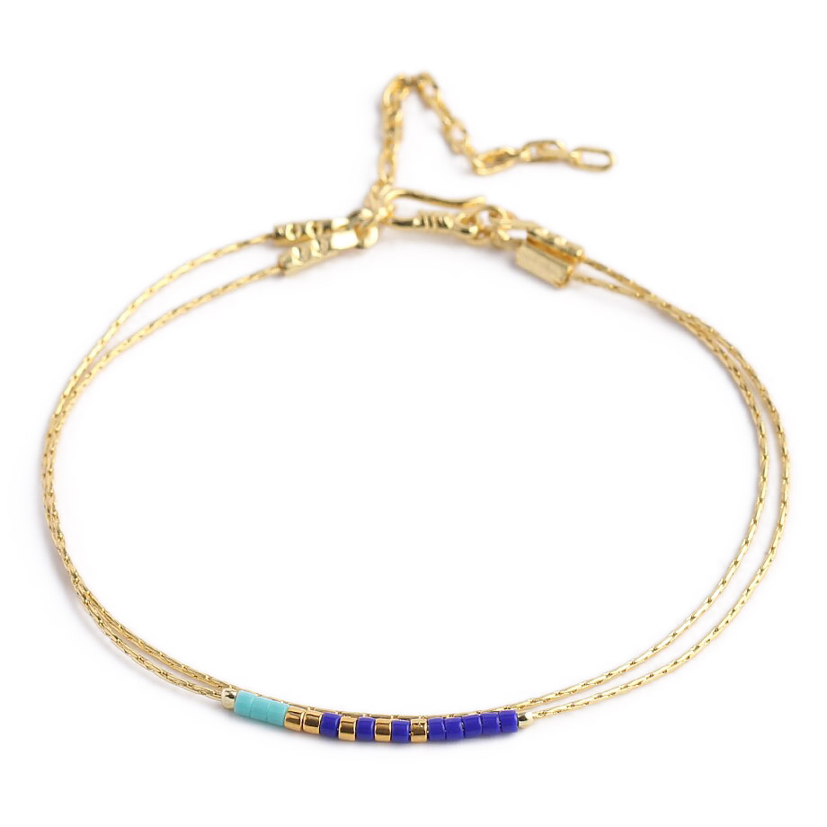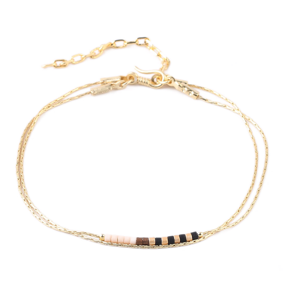 Ce bracelet Daya est constitué de perles de rocailles japonaises appelées miyuki qui sont d’une qualité irréprochable. Montées sur une double chaîne dorée avec un fermoir toggle très pratique, le bracelet Daya deviendra vite votre accessoire de mode essentiel de cet été.