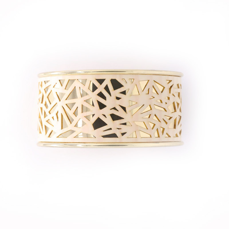 Le Bracelet Manchette Ethnique Doré et Pin : Un Bijou Eco-Responsable !