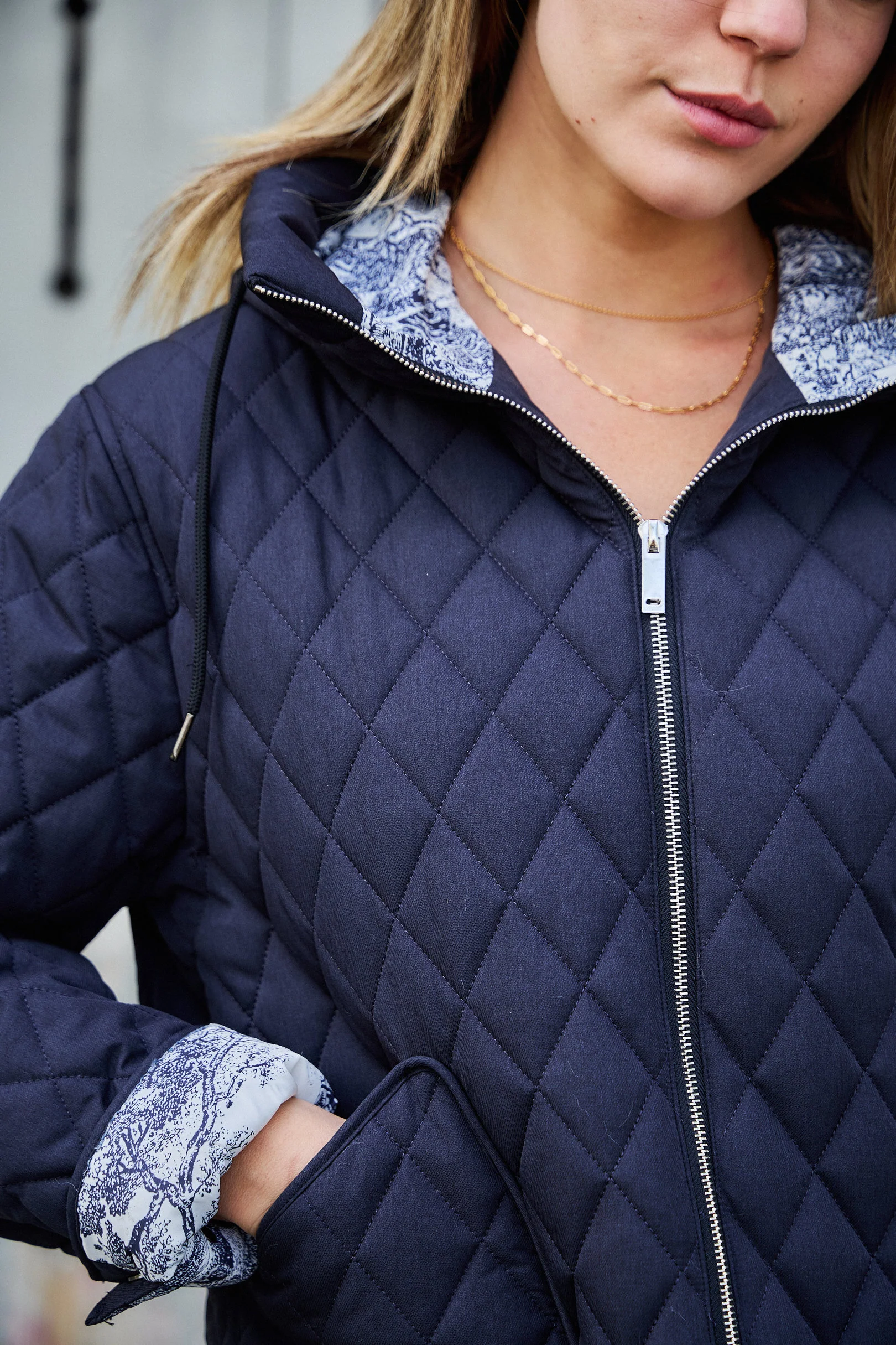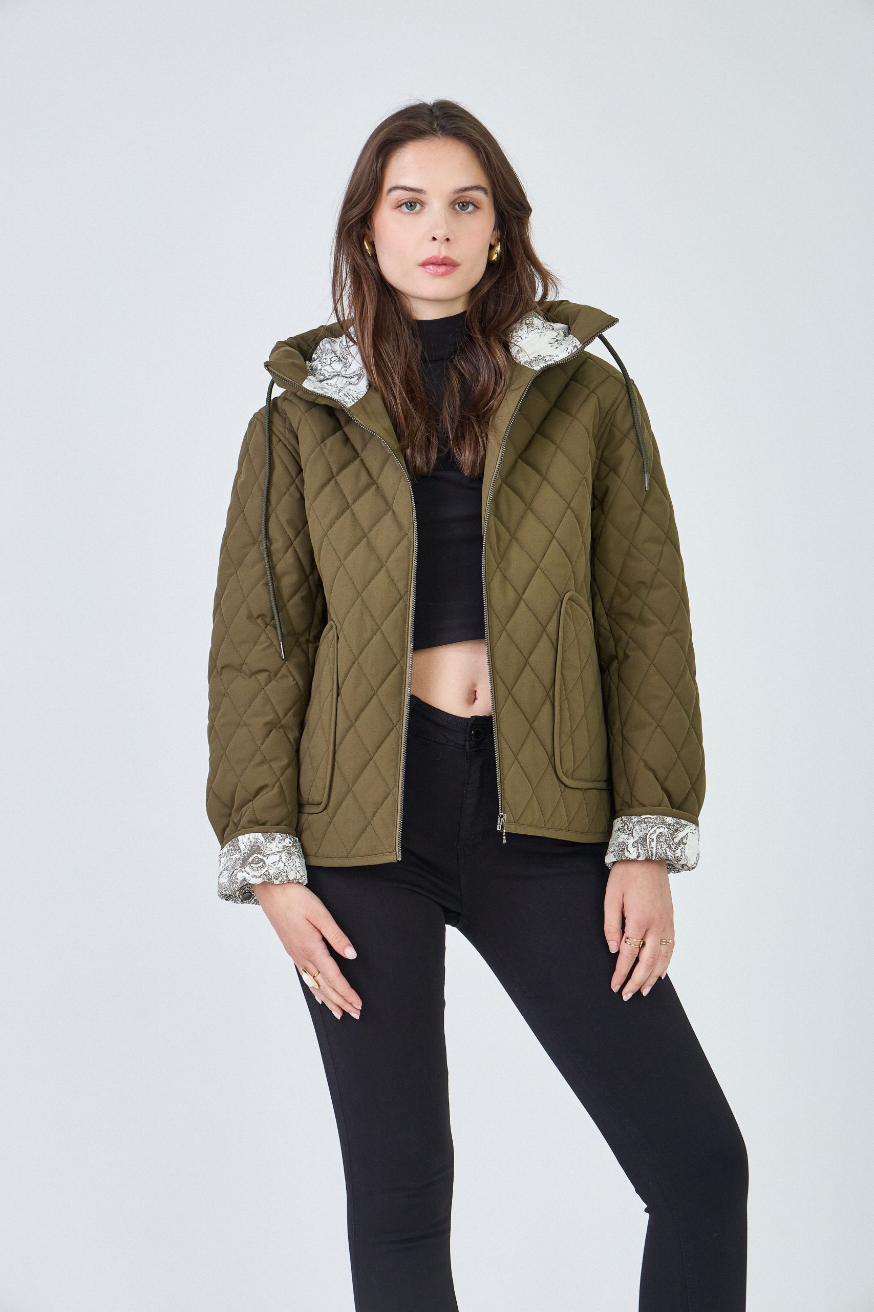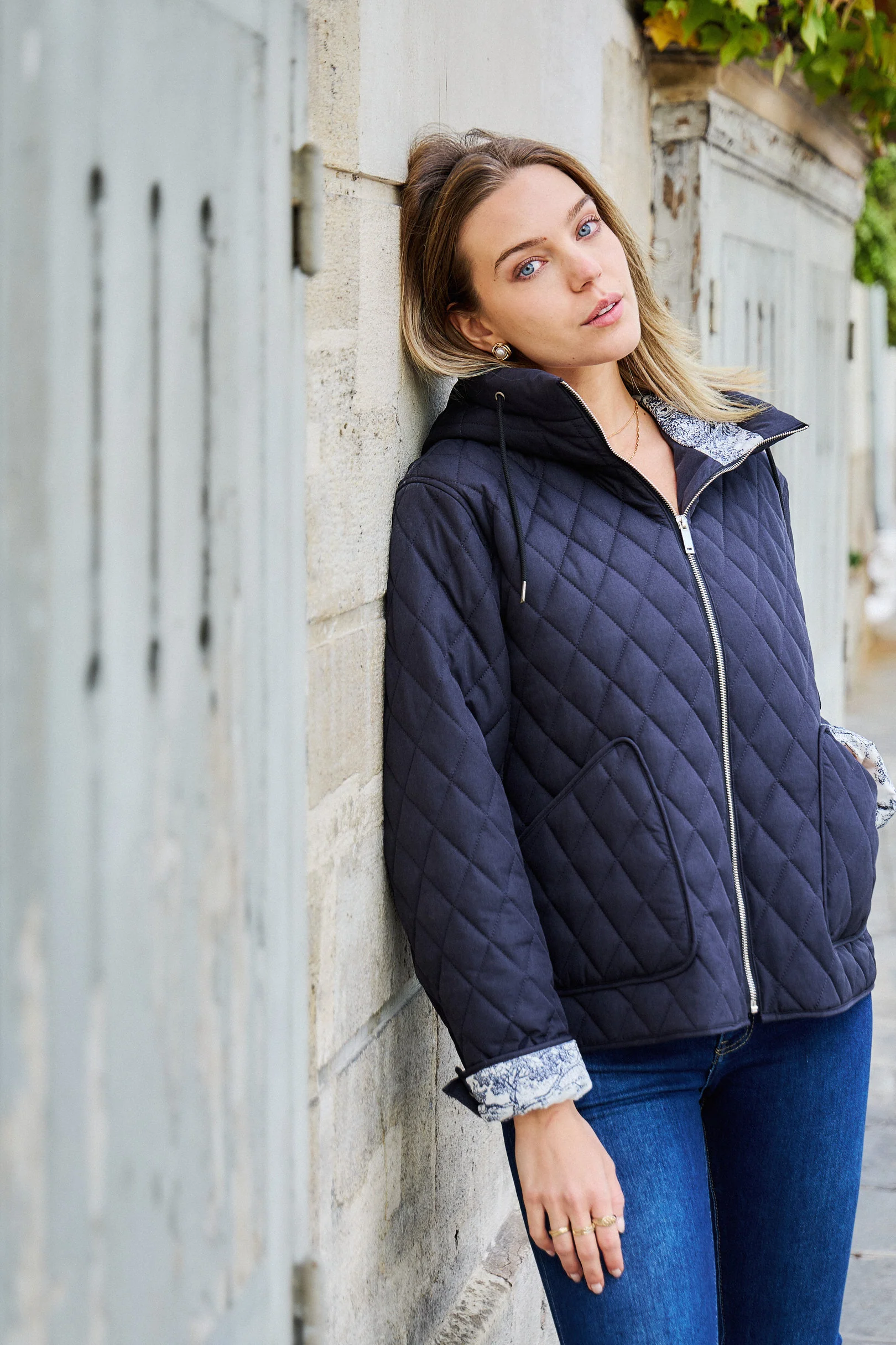 Pratique et urbaine, la veste Céleste est parfaite pour affronter la mi-saison avec style. Son design fonctionnel et son intérieur imprimé lui apportent une touche de fantaisie tout en restant sobre et polyvalente. Détails produit : Fermeture zippée Deux poches latérales Capuche intégrée Intérieur à motif Matelassage losange Tailles disponibles : S, M, L