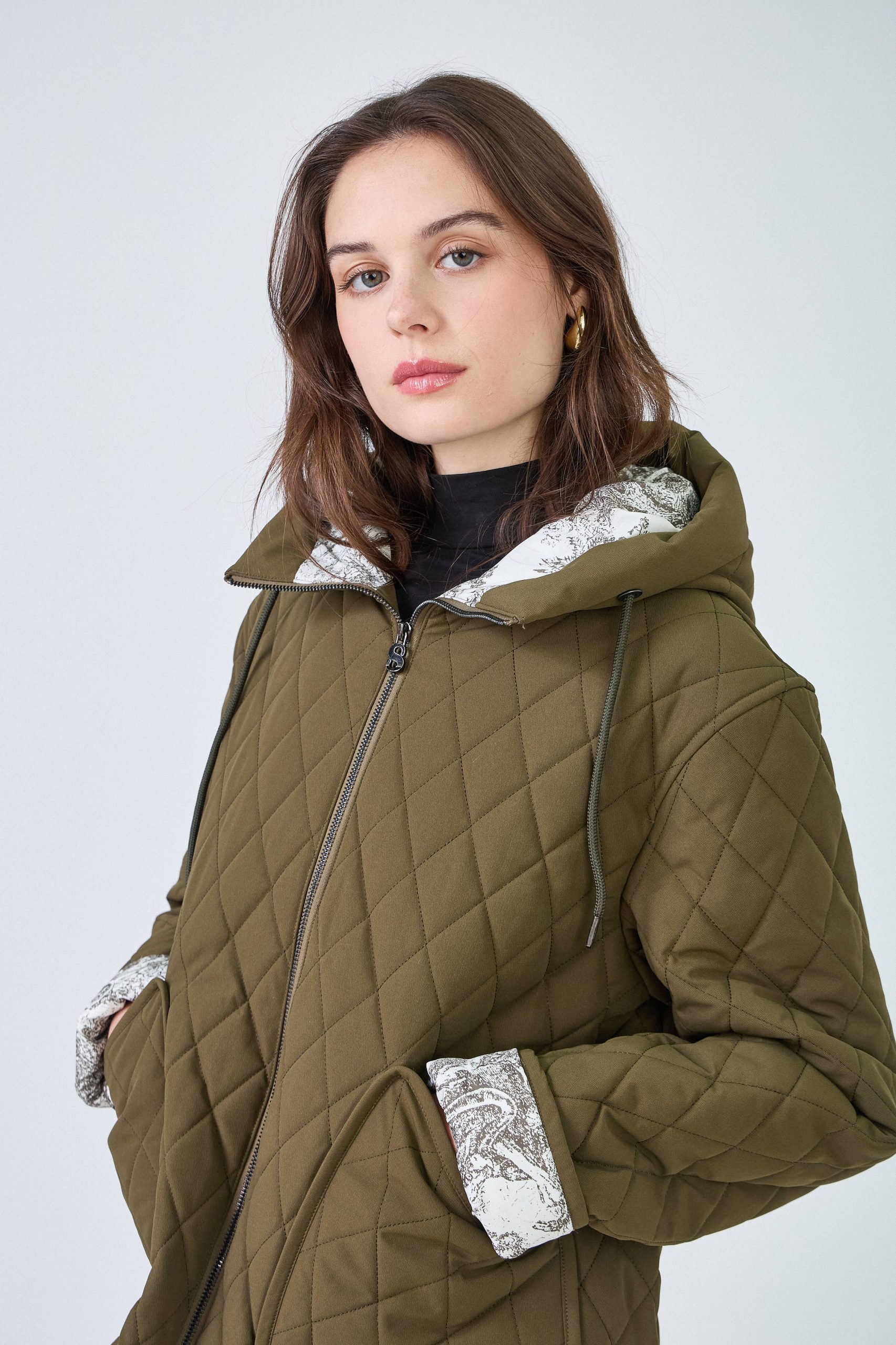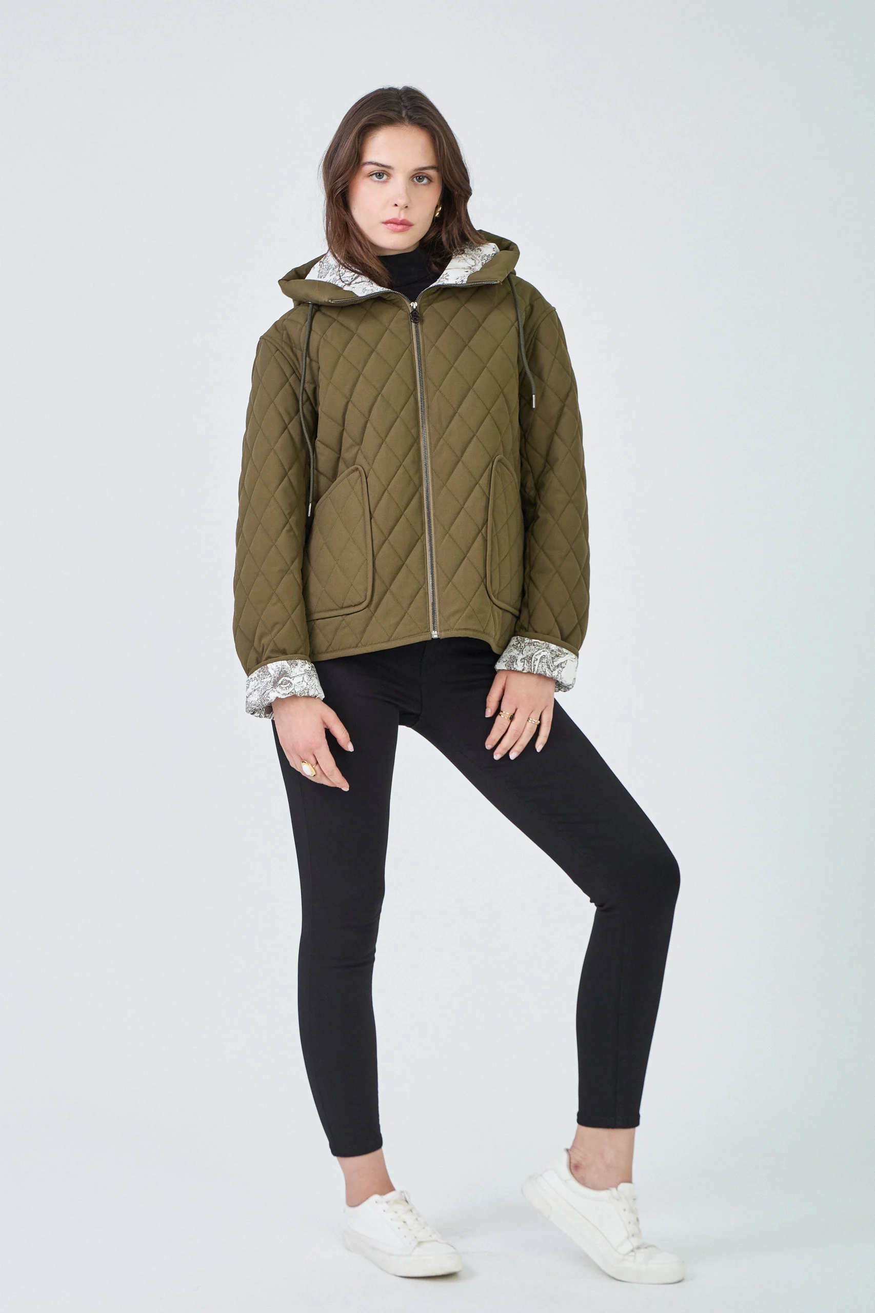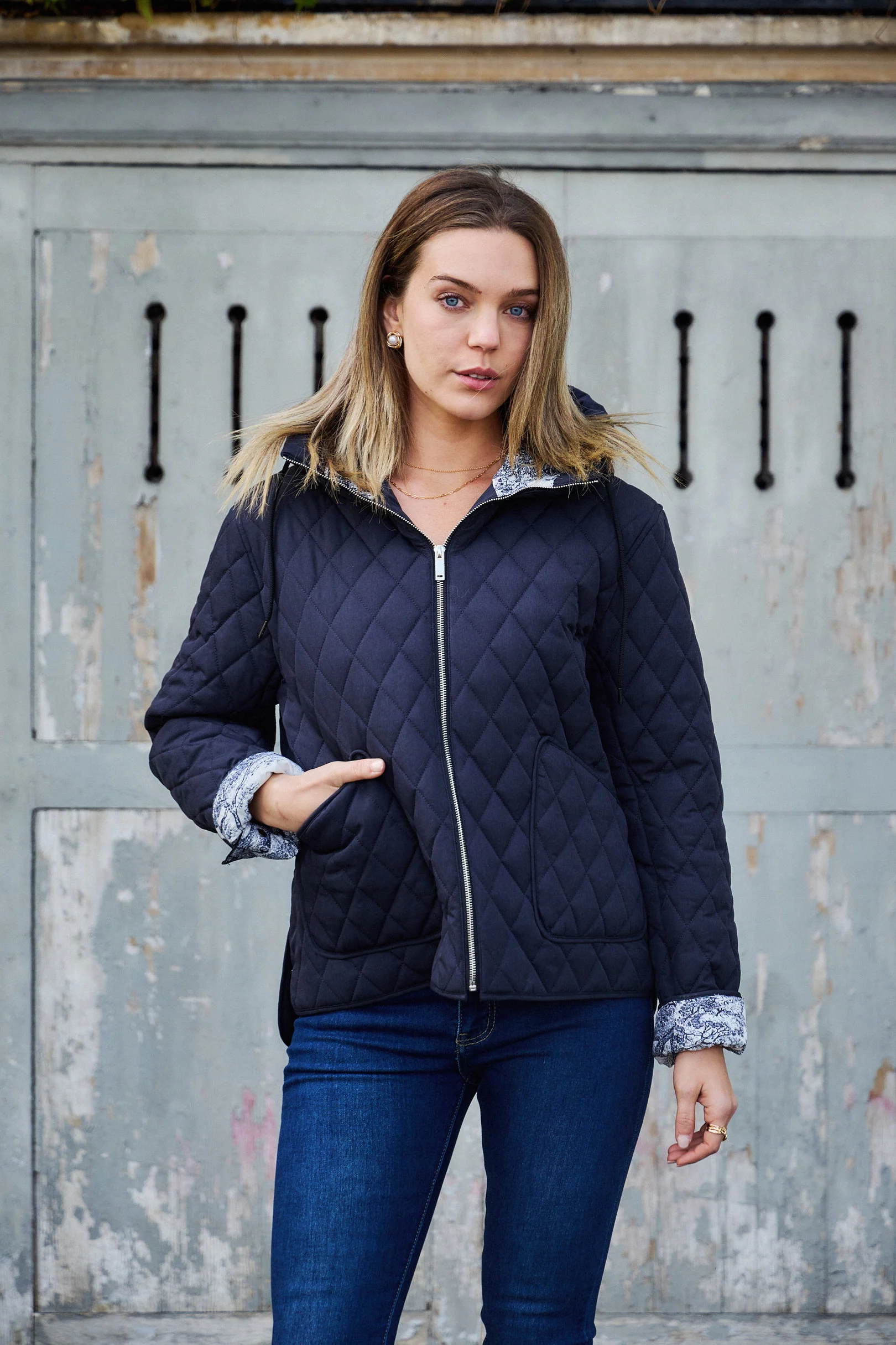 Pratique et urbaine, la veste Céleste est parfaite pour affronter la mi-saison avec style. Son design fonctionnel et son intérieur imprimé lui apportent une touche de fantaisie tout en restant sobre et polyvalente. Détails produit : Fermeture zippée Deux poches latérales Capuche intégrée Intérieur à motif Matelassage losange Tailles disponibles : S, M, L