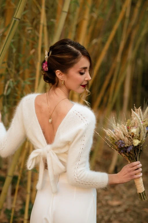Découvrez notre somptueux cache-cœur en angora, conçu spécialement pour sublimer les robes de mariée tout en offrant une élégance intemporelle pour toutes les autres occasions. Fabriqué à partir de fibres d’angora de la plus haute qualité, ce cache-cœur combine douceur, chaleur et légèreté, parfait pour vous accompagner lors de vos moments les plus précieux.