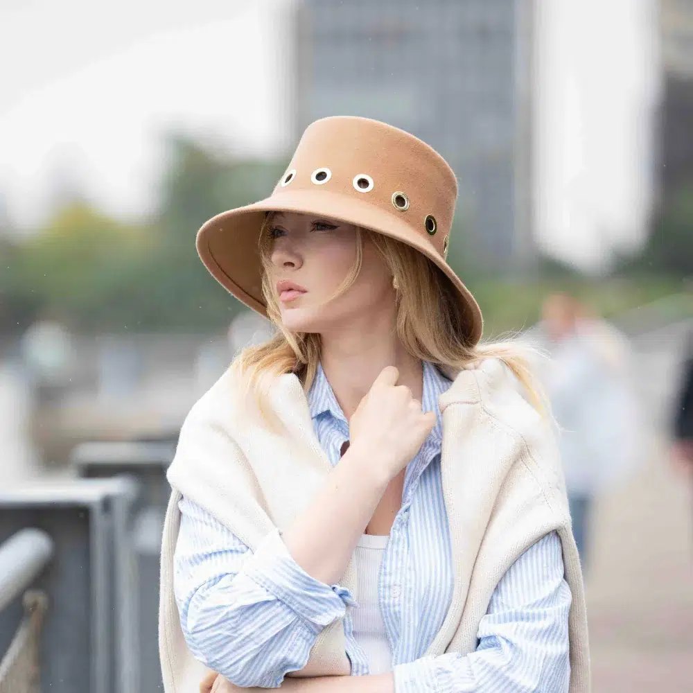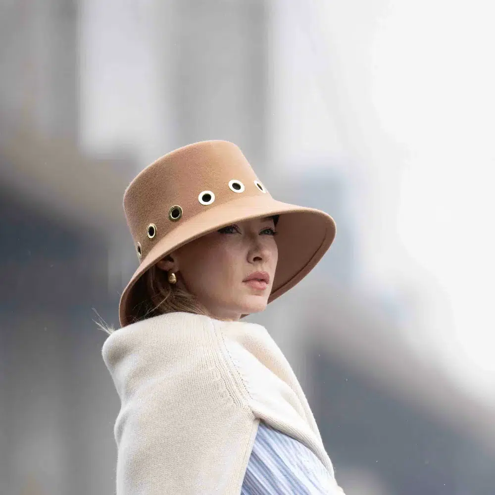 Le chapeau femme Courch Beige signé Lastelier réinvente l’élégance hivernale avec audace. Cette création en forme cloche aux lignes douces et affirmées transforme chaque tenue. Confectionné en feutre de laine déperlant de haute qualité, ce chapeau feutre femme beige est assemblé dans les ateliers italiens. Avec le plus grand soin et une attention méticuleuse aux détails.