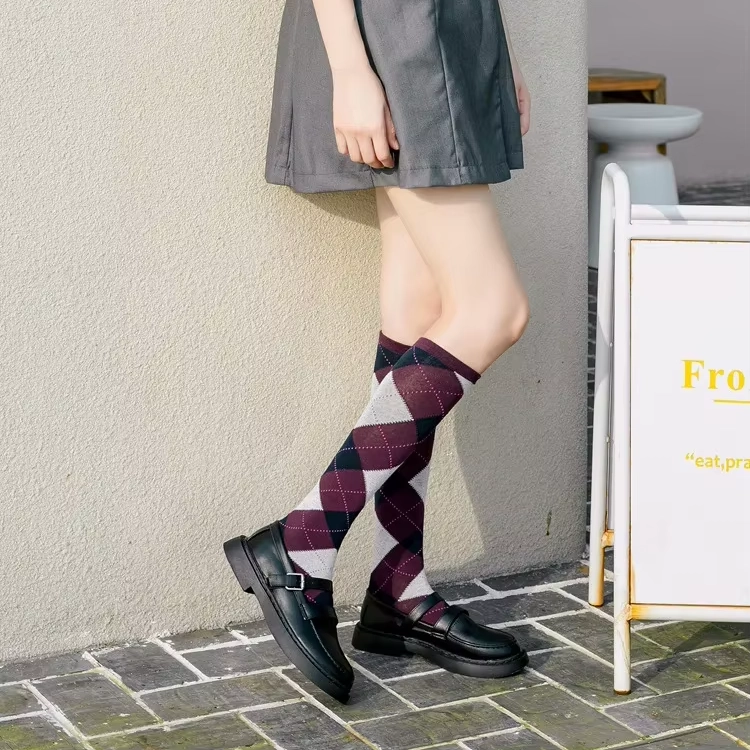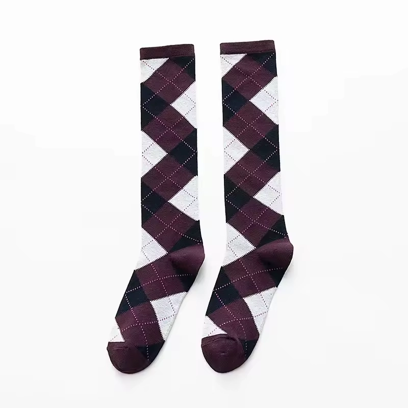 Chez Shine, on te propose d’adopter la version la plus chic et mystérieuse du style Preppy! Ces chaussettes hautes femme sont l’accessoire signature pour capturer cette aura « Old Money » avec une touche de profondeur. Confectionnées dans une maille douce et confortable qui monte juste sous le genou, elles affichent fièrement le motif losange (Argyle) dans une palette de couleurs riche et intense : un bordeaux profond, un noir graphique et une touche de blanc pour le contraste. C’est l’accessoire qui change tout, celui qui donne du cachet et une allure maîtrisée à tes tenues.
