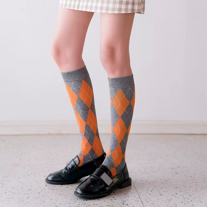 Grâce à Shine, laisse-toi séduire par le twist le plus audacieux du style Preppy Chic ! Ces chaussettes hautes femme sont la pièce maîtresse pour capturer cette aura « Old Money » avec une touche de peps. Confectionnées dans une maille douce et confortable qui monte juste sous le genou, elles revisitent le classique motif Argyle (le fameux losange) dans un duo de couleurs inattendu : un orange vitaminé qui se détache sur un gris chiné intemporel. Bien plus qu’un simple accessoire, c’est le détail de caractère qui signe ton look et lui donne cette touche d’allure unique.