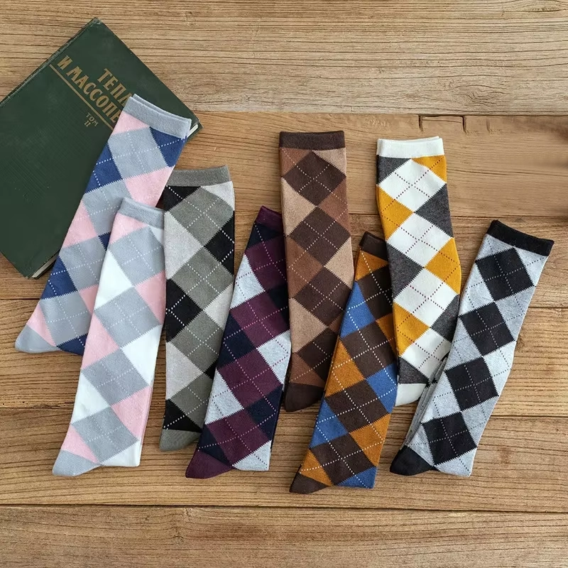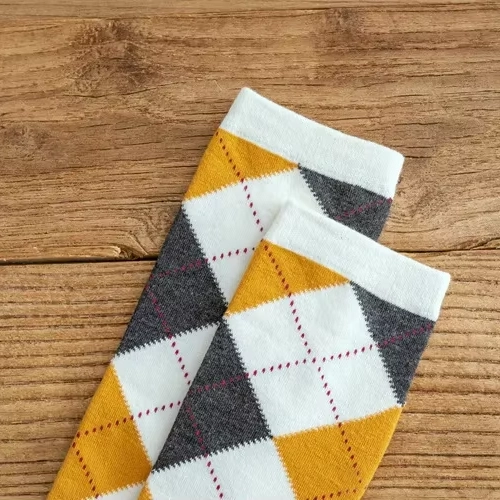 Chez Shine, on te propose de te laisser séduire par le twist le plus lumineux du style Preppy Chic ! Ces chaussettes hautes femme sont la pièce maîtresse pour capturer cette aura « Old Money » avec une touche de peps. Confectionnées dans une maille douce et confortable qui monte juste sous le genou, elles revisitent le classique motif Argyle (le fameux losange) dans un trio de couleurs ultra-frais : un jaune moutarde, un gris anthracite et du blanc. Bien plus qu’un simple accessoire, c’est le détail de caractère qui signe ton look et lui donne cette touche d’allure unique et audacieuse.