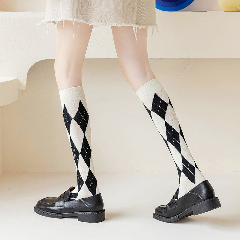 Laisse-toi séduire par l’élégance intemporelle de ces chaussettes hautes femme. Elles sont la pièce maîtresse pour capturer cette aura « Old Money » et ce style Preppy Chic qui séduit toujours. Confectionnées dans une maille douce et confortable qui monte juste sous le genou, elles arborent le motif Argyle (le fameux losange) dans son duo le plus iconique : un noir profond et un blanc crème. Pour Shine c’est bien plus qu’un simple accessoire, c’est le détail de caractère qui signe ton look et lui donne cette touche d’allure unique.