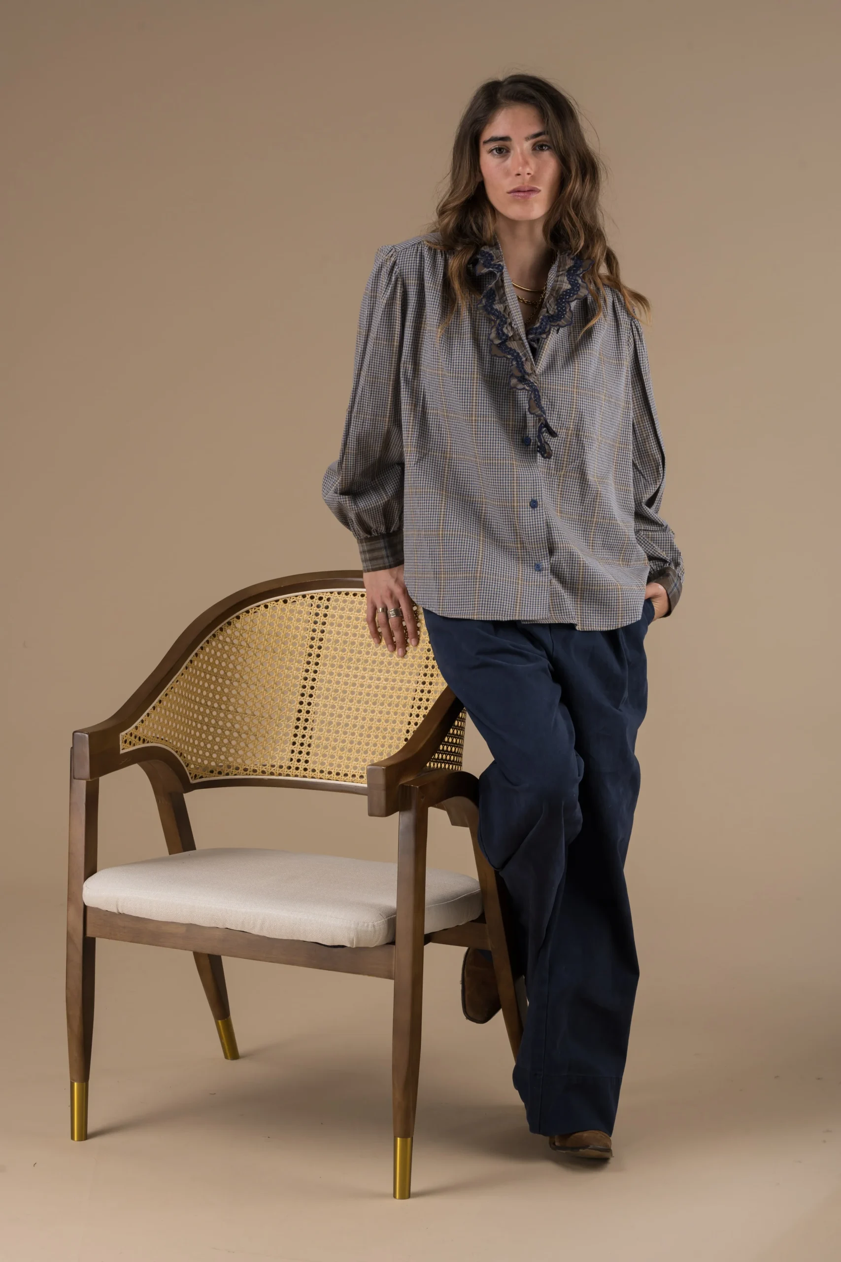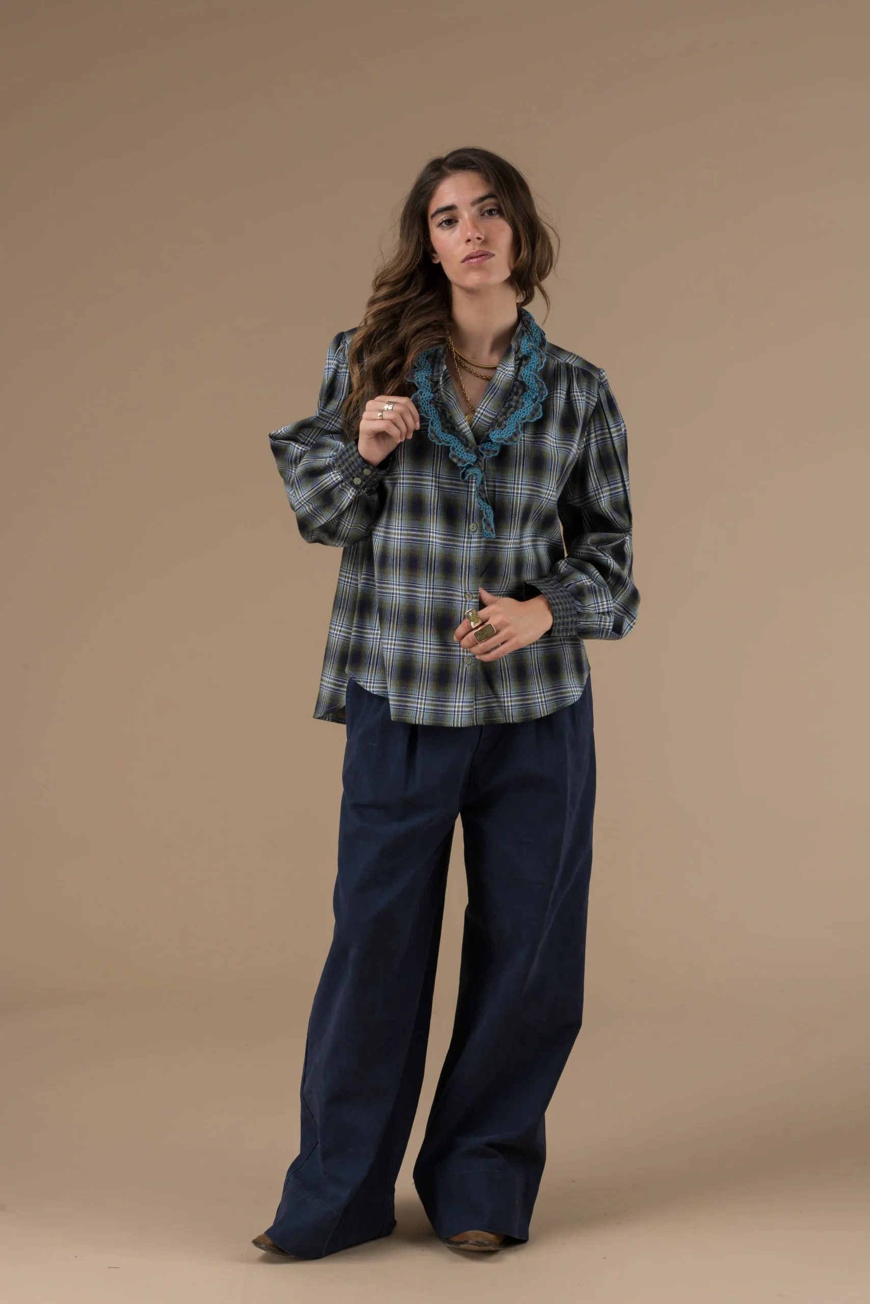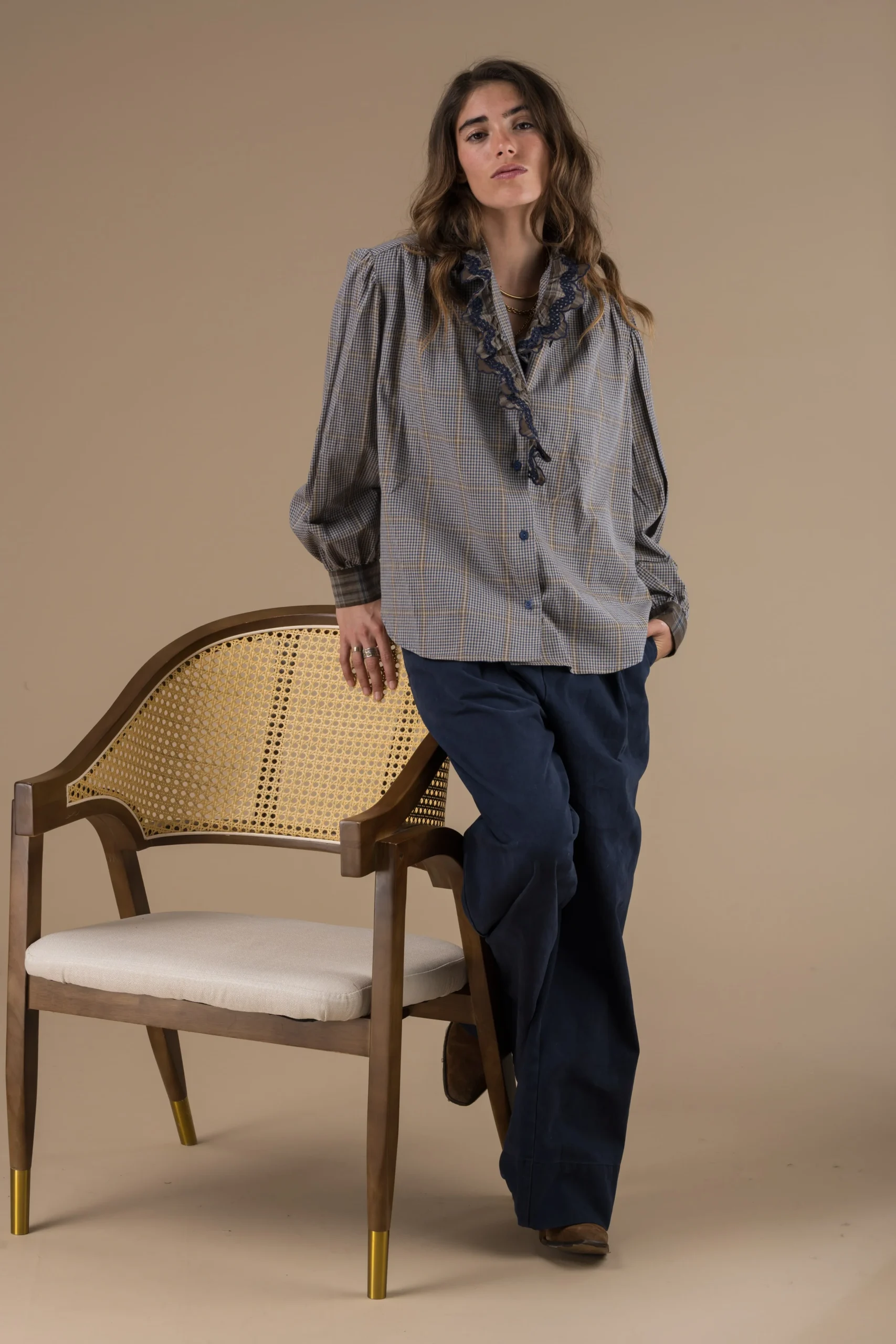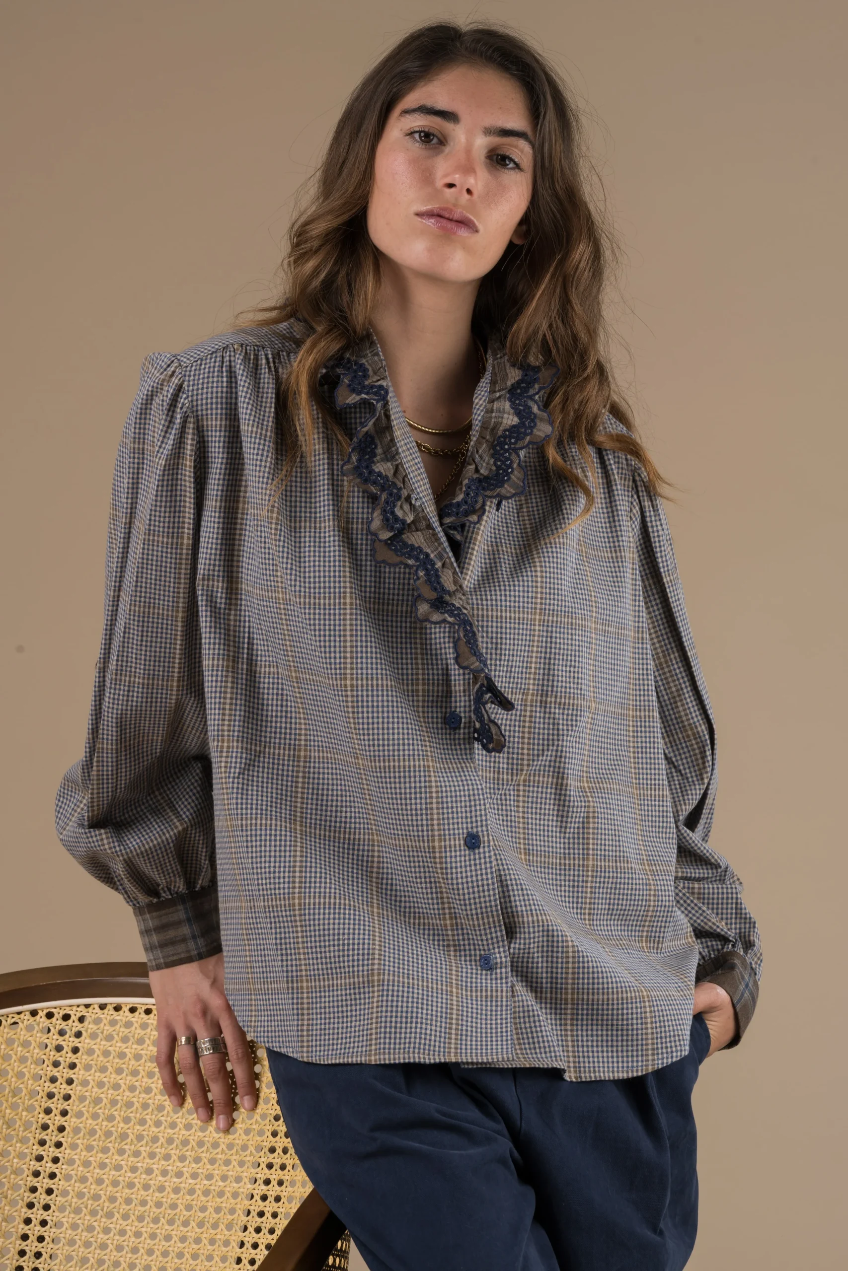Découvrez la chemise Alya d’Adoré Paris, une pièce qui allie l’intemporalité des carreaux et la délicatesse des détails. Sa coupe droite est à la fois classique et moderne, et ses manches longues en font un basique de votre dressing. Le col à volants et les détails brodés contrastants apportent une touche féminine et raffinée. Parfaite pour le quotidien, cette chemise est l’alliée idéale pour un look à la fois chic, confortable et plein de caractère.