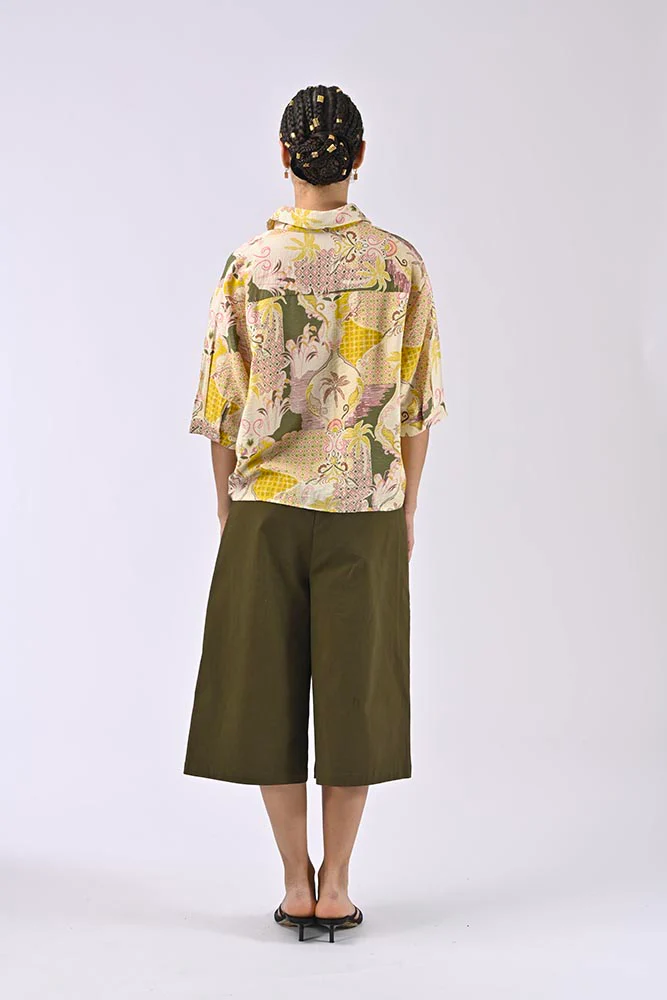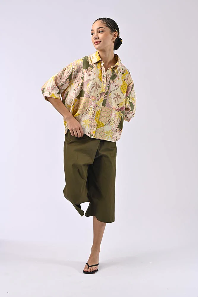 La chemise manches courtes Ezekiel en jaune est une pièce bohème et sophistiquée, idéale pour un style estival décontracté. Son imprimé floral et géométrique mélange des tons vibrants de jaune, rehaussés de touches de rose, vert et beige pour un rendu dynamique et moderne.