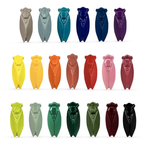 L’argile blanche utilisée est rigoureusement sélectionnée et chaque cigale est entièrement décorée à la main, chaque pièce est unique.