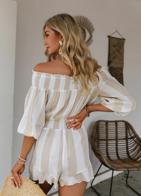 - Détails : Short à volants, Taille élastique, manches bouffantes, boutons sur le col