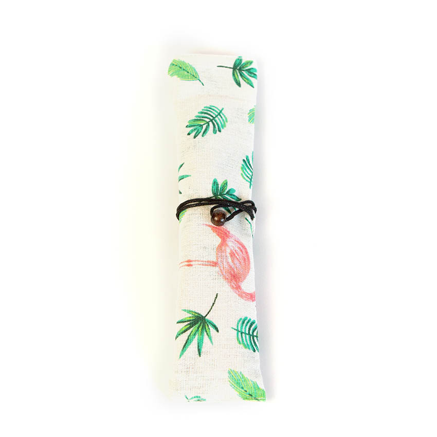 Indispensable pour vos repas nomades, ces couverts réutilisables en bambou Flamant Rose se glissent facilement dans votre lunch bag !
