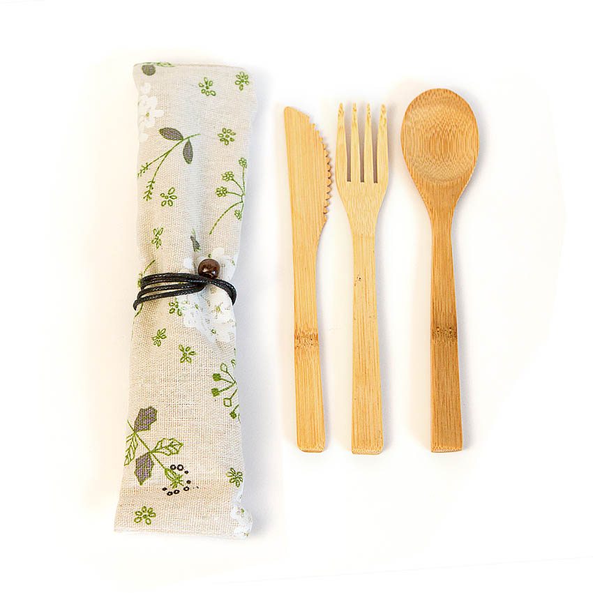 Couverts Réutilisable en Bambou Fleurs : Idéal pour les Repas Nomades !