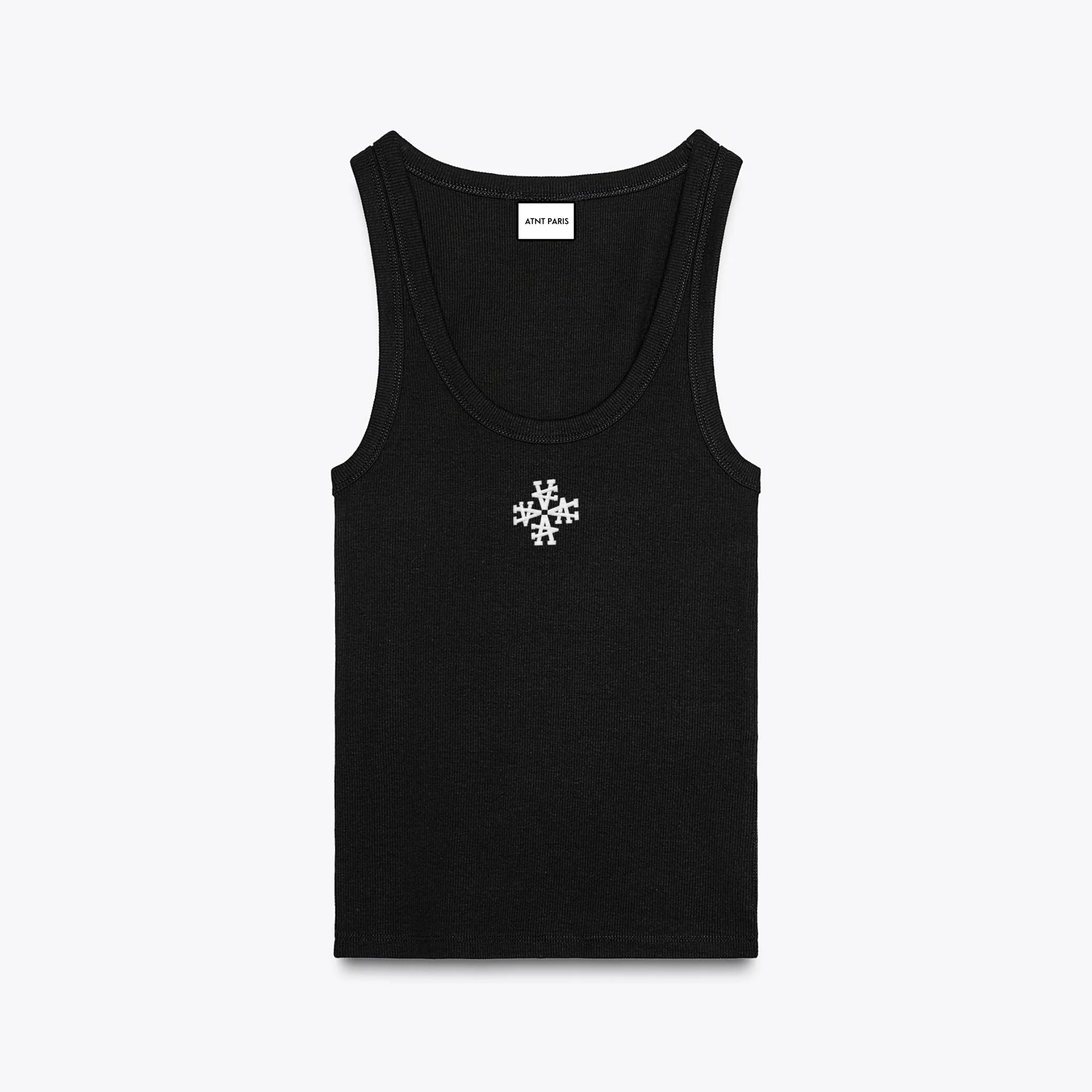 Essentiel du vestiaire féminin, ce débardeur côtelé à bretelles fines mise sur la simplicité élégante. Sa coupe près du corps met en valeur la silhouette, tandis que sa matière douce et extensible assure un confort optimal. Le logo brodé Atnt au centre apporte une touche subtile et raffinée.