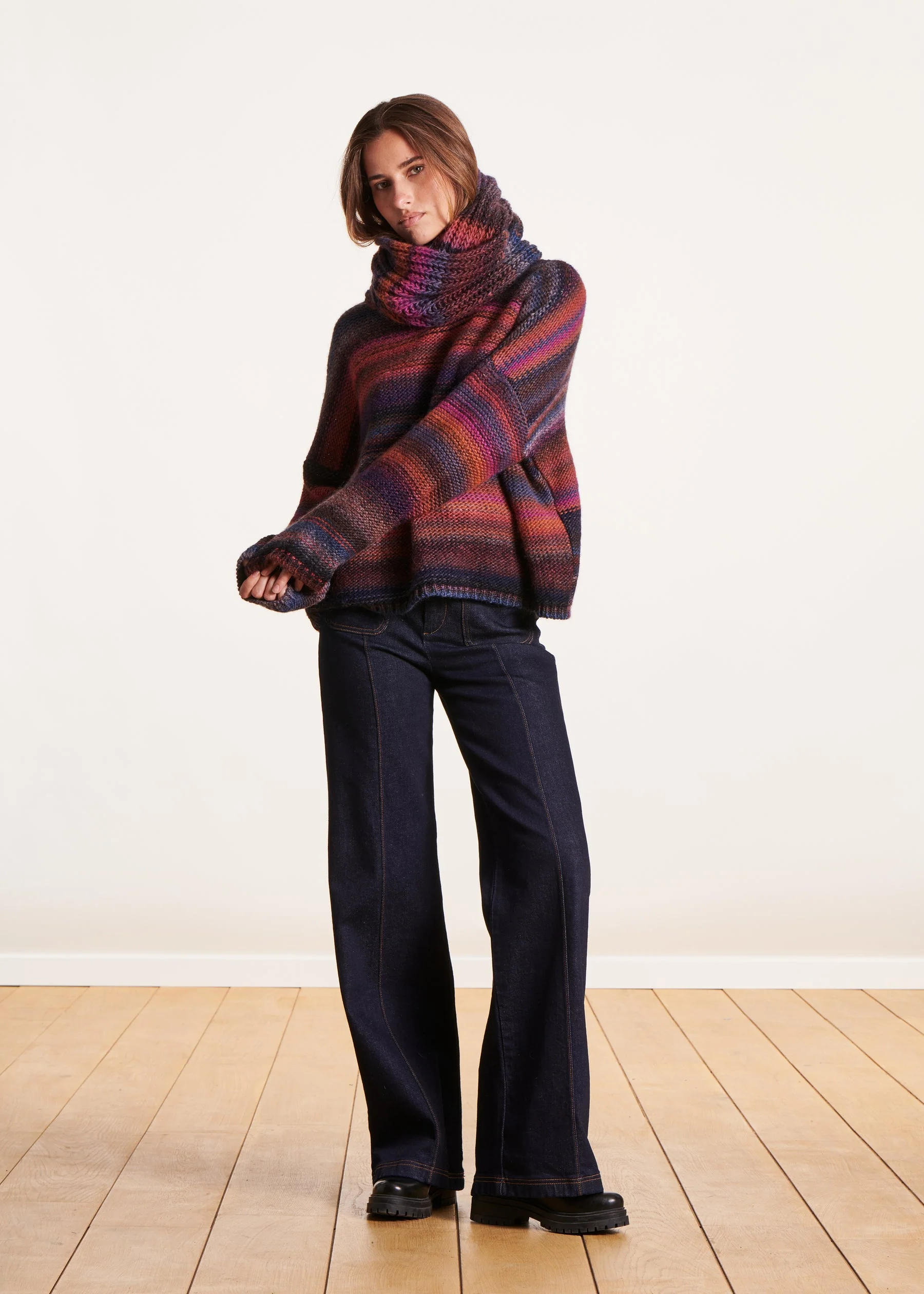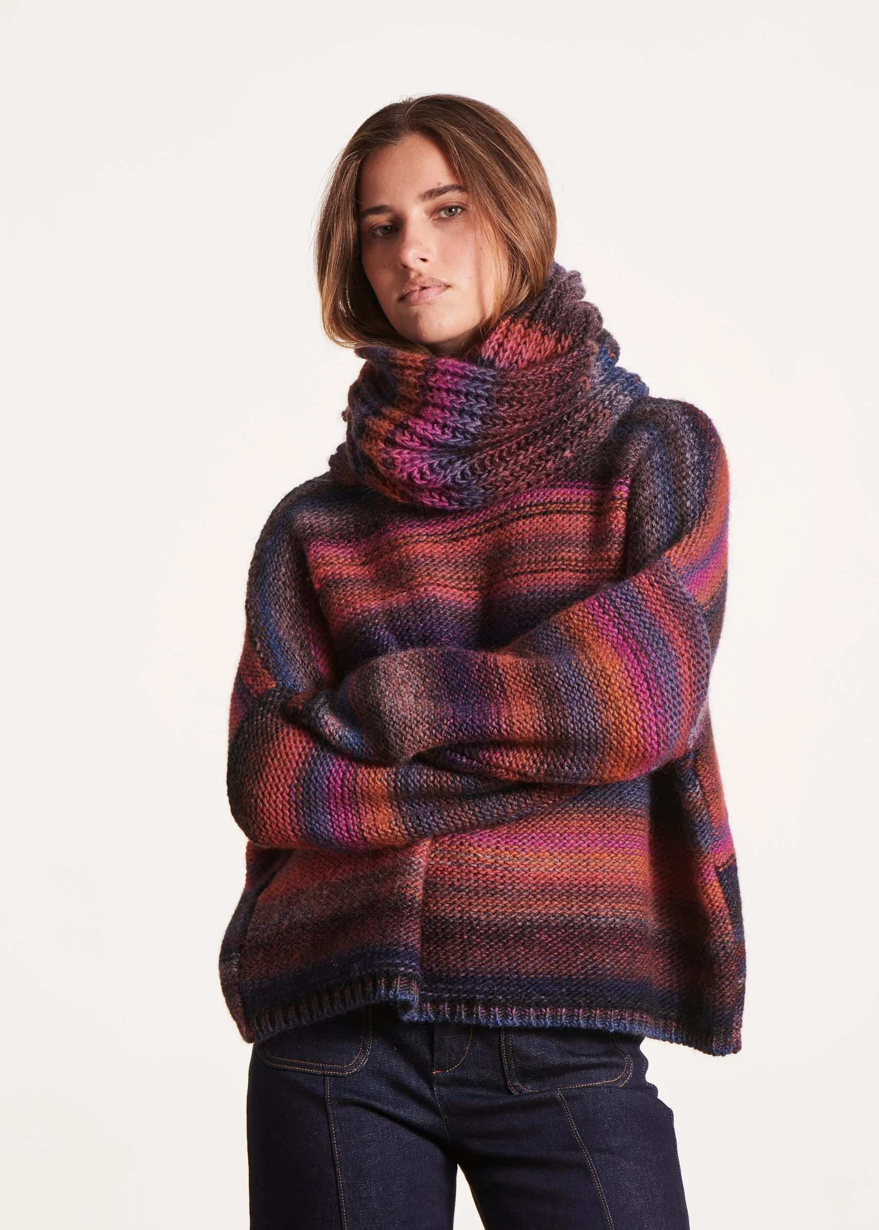 – Écharpe tricotée multicolore– Laine majoritaire