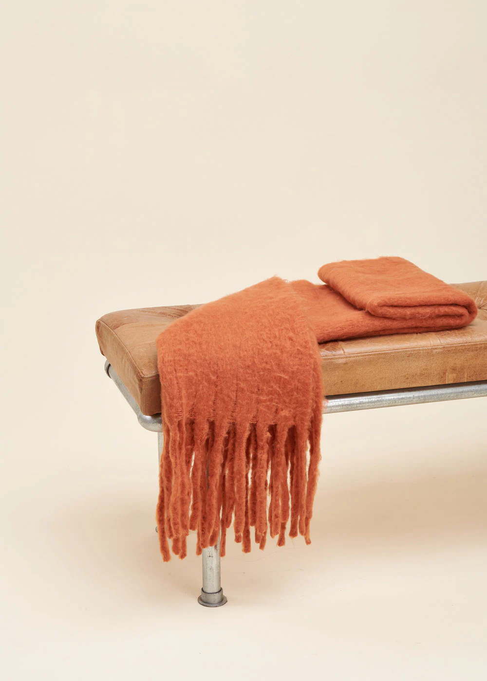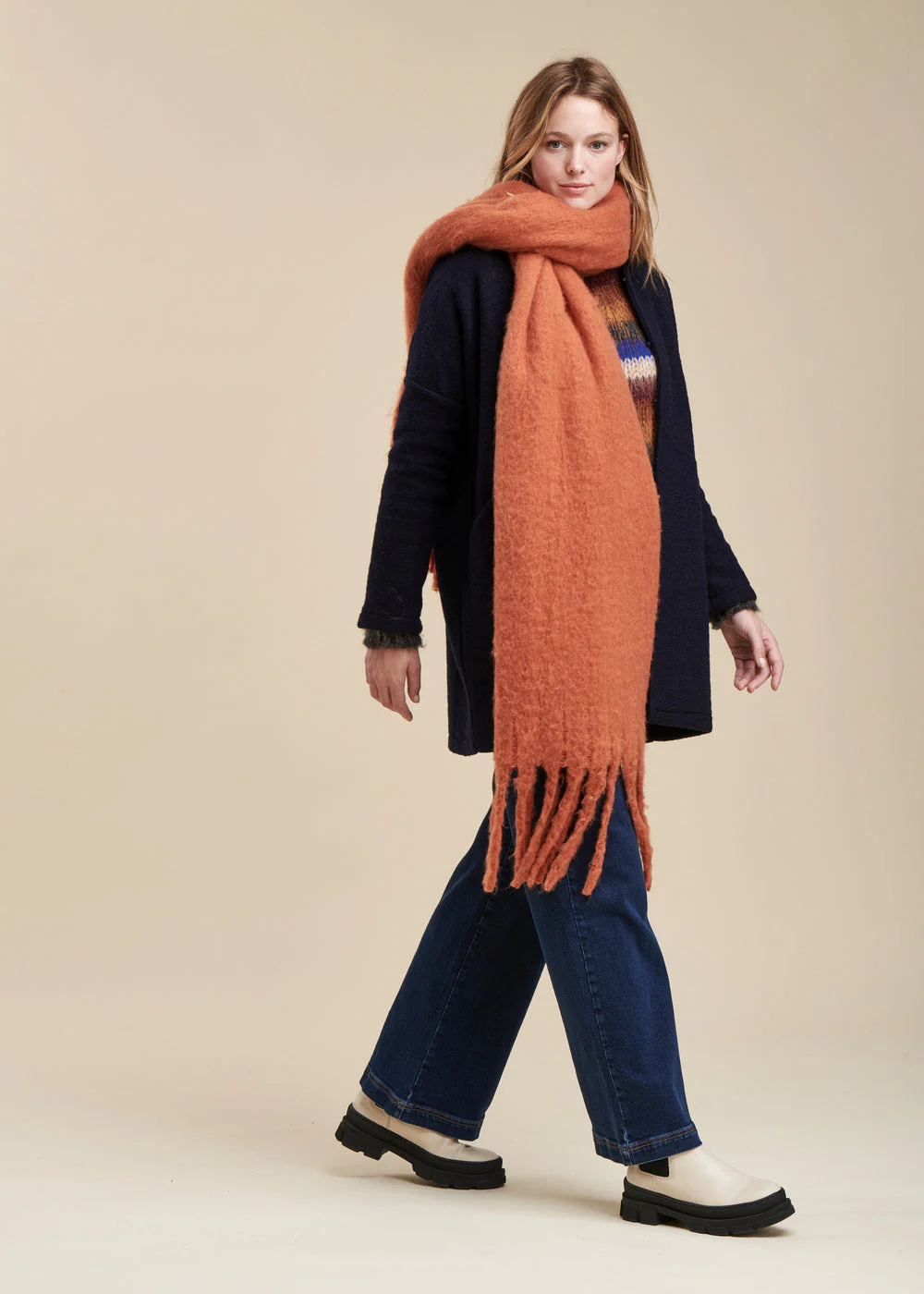 Étole unie, finition larges franges. 60 x 200 cm.