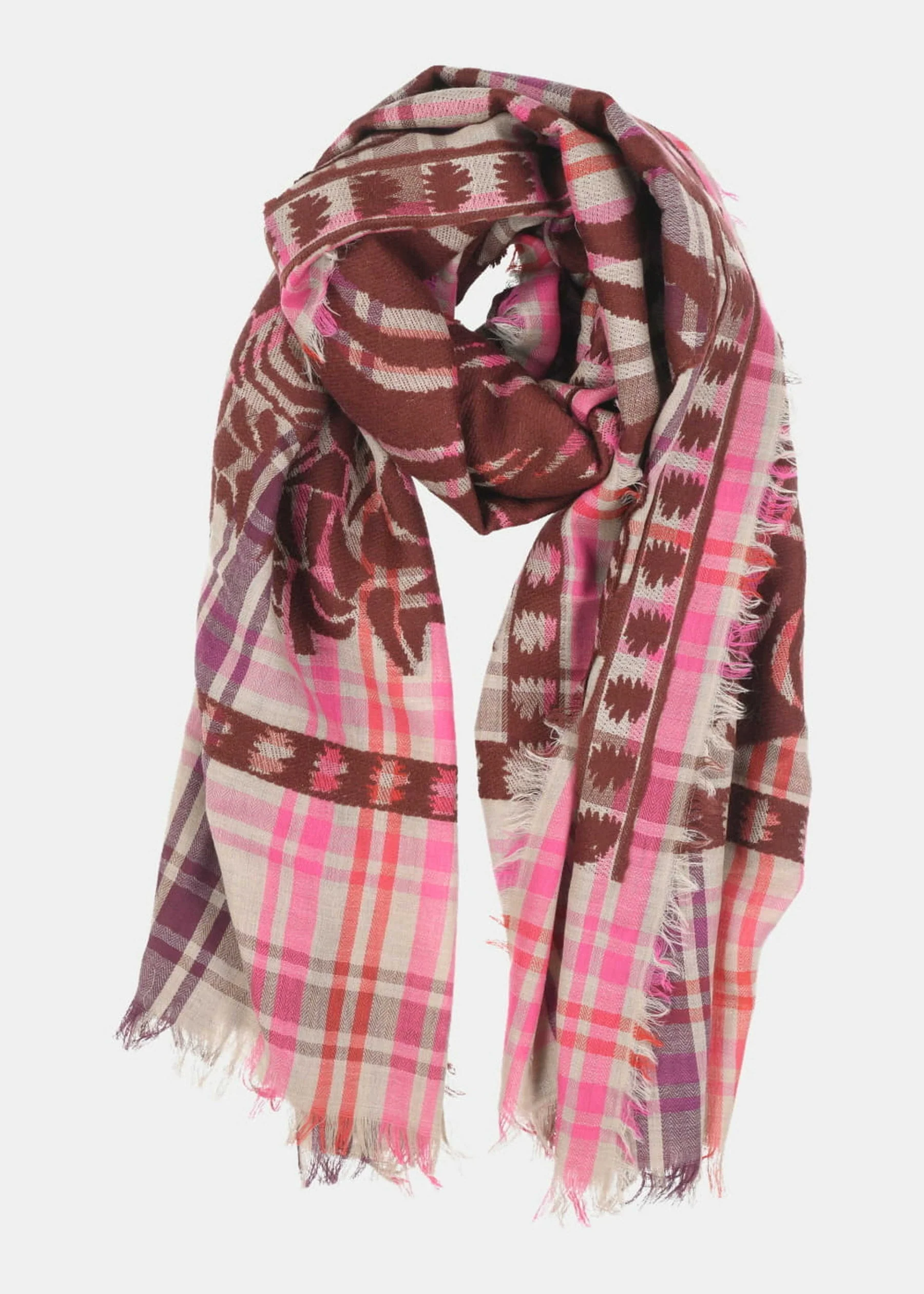 – Foulard à carreaux et imprimé tigre– Contient de laine et du coton