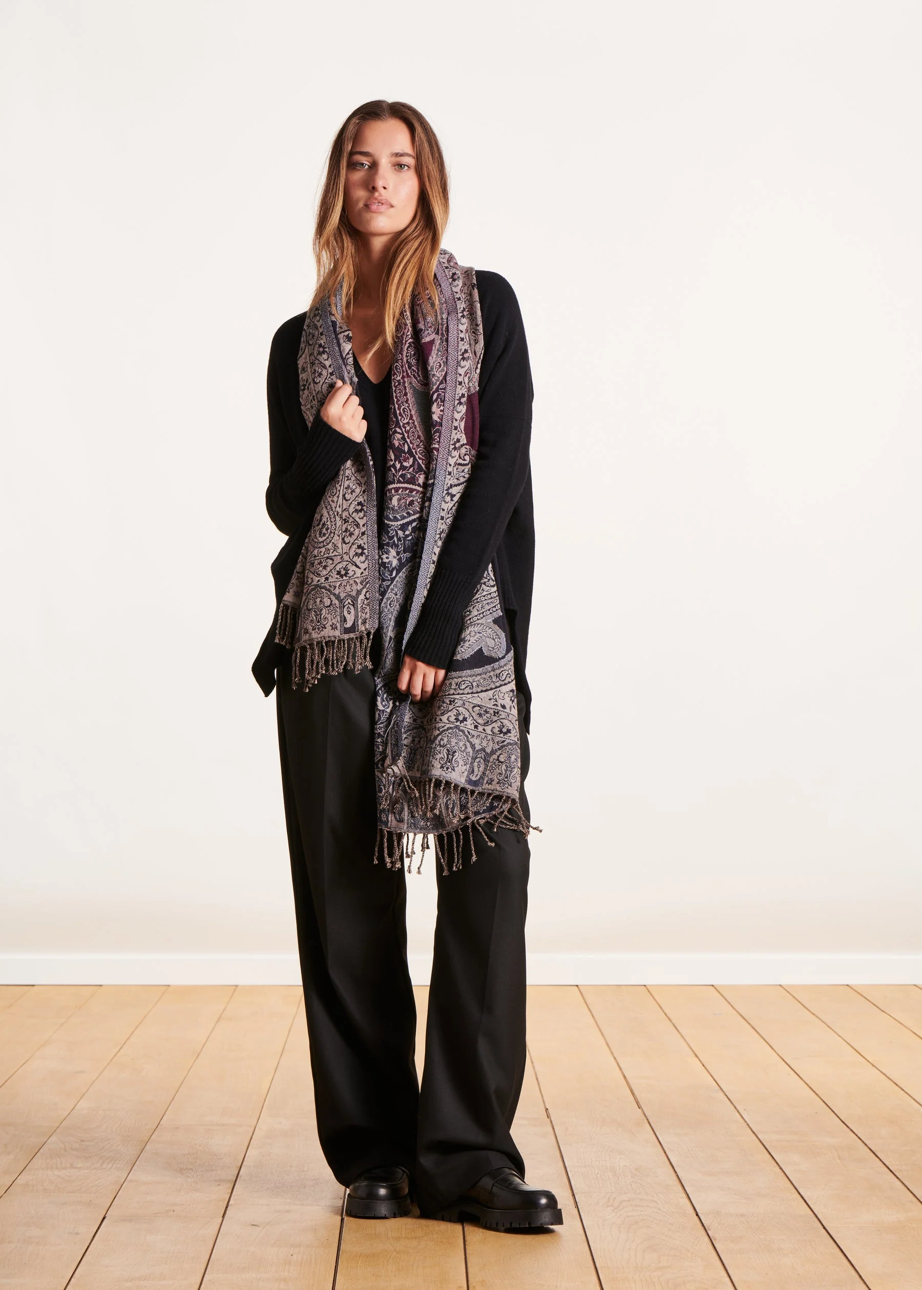 – Foulard dégradé multicolore en coton– Finition petites franges