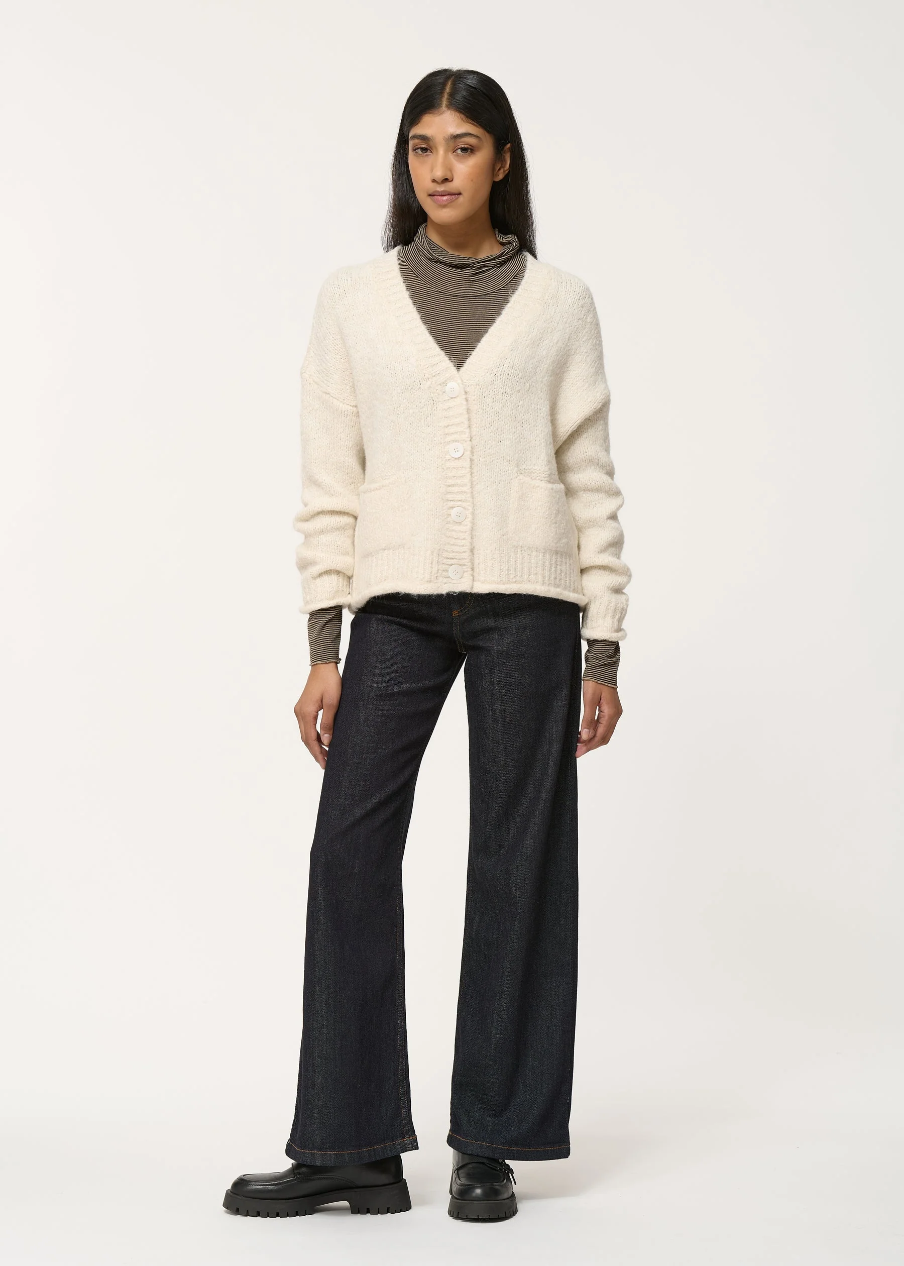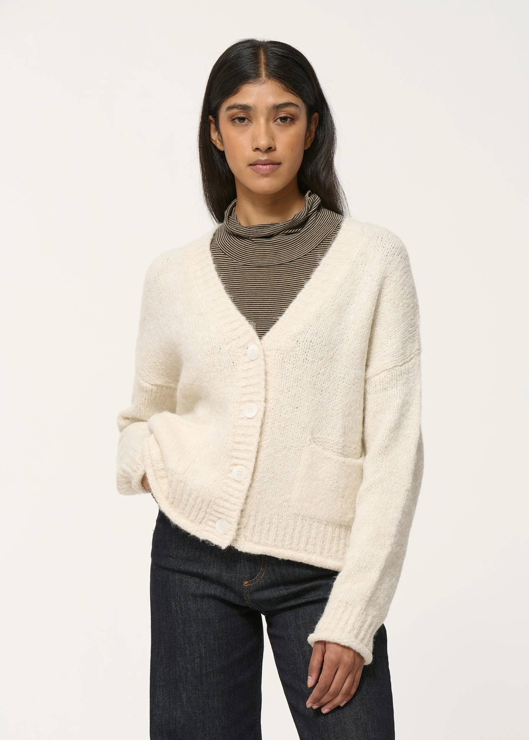 – Gilet ample en maille mousseuse épaisse– Coupe droite– Manches longues, emmanchures descendues– Encolure V– Poches plaquées à la taille– Fermeture devant boutonnée– Finitions en bord-côtes roulottés aux poignets et en bas de corps Notre mannequin mesure 1m72 et porte une taille 36/S.Ce modèle taille normalement, prenez votre taille habituelle.