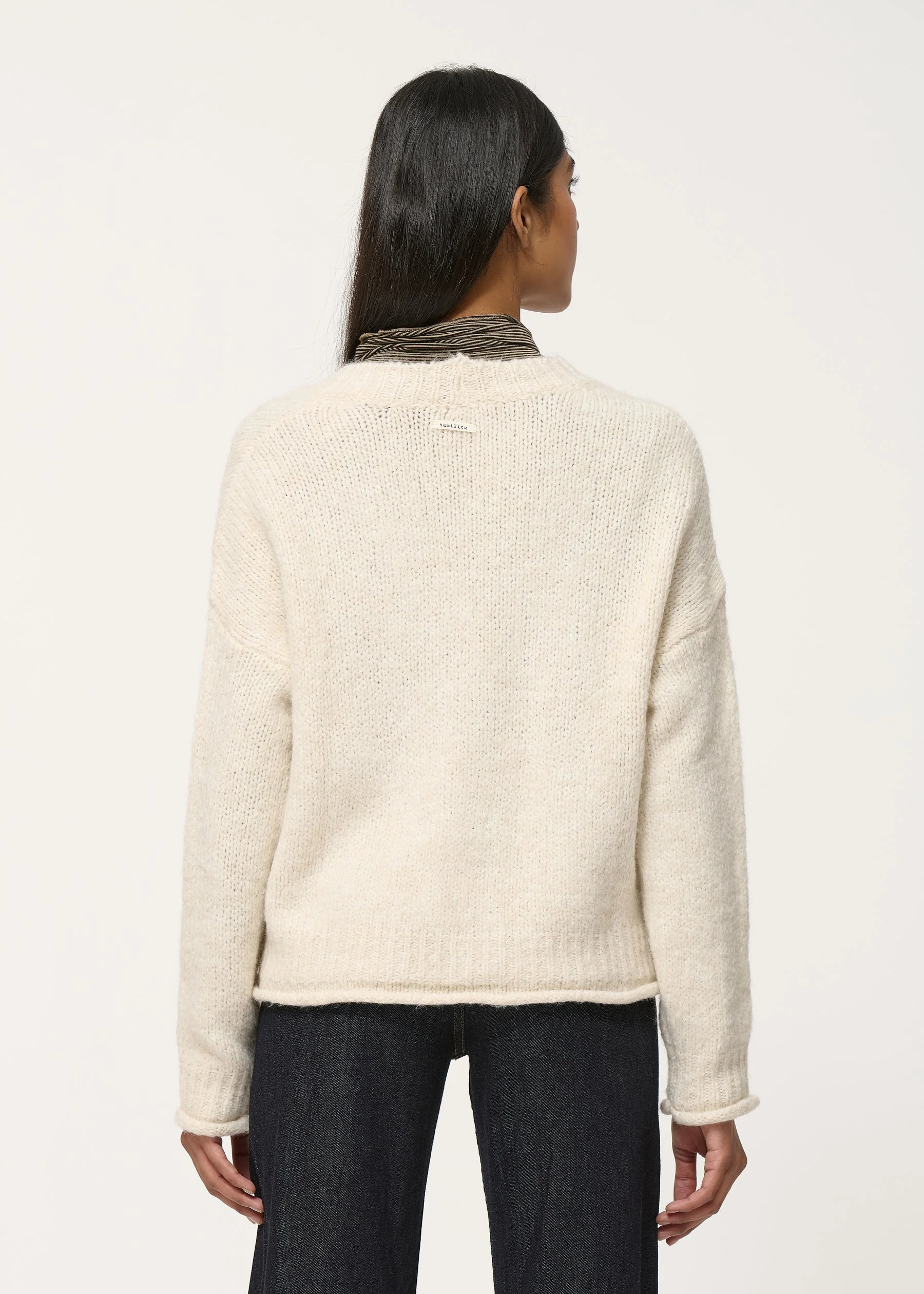 – Finitions en bord-côtes roulottés aux poignets et en bas de corps