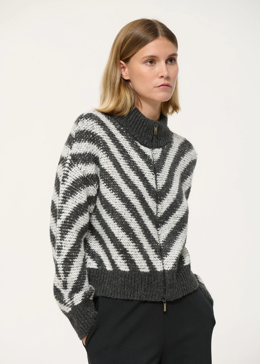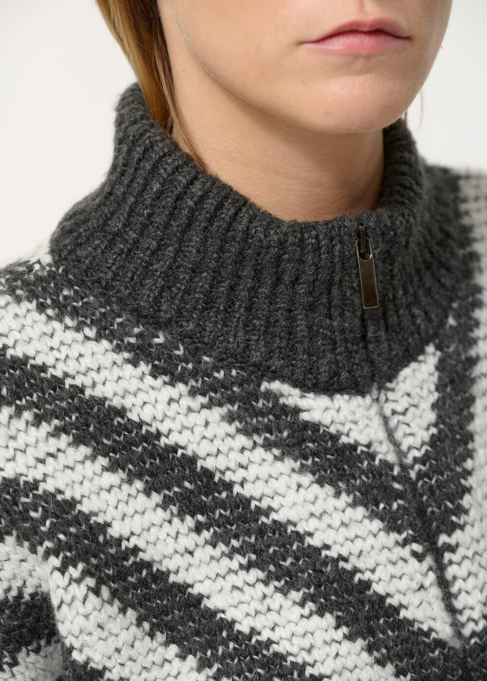 Gilet oversize gris et blanc col montant