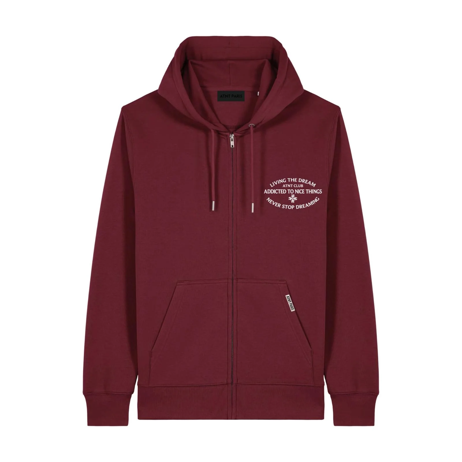 Doté d’une capuche doublée, de cordons premium avec embouts métalliques et d’un zip frontal YKK en métal brossé, il incarne une allure moderne et intemporelle. Son imprimé signature au dos reflète l’ADN d’ATNT : audace, minimalisme et exigence.