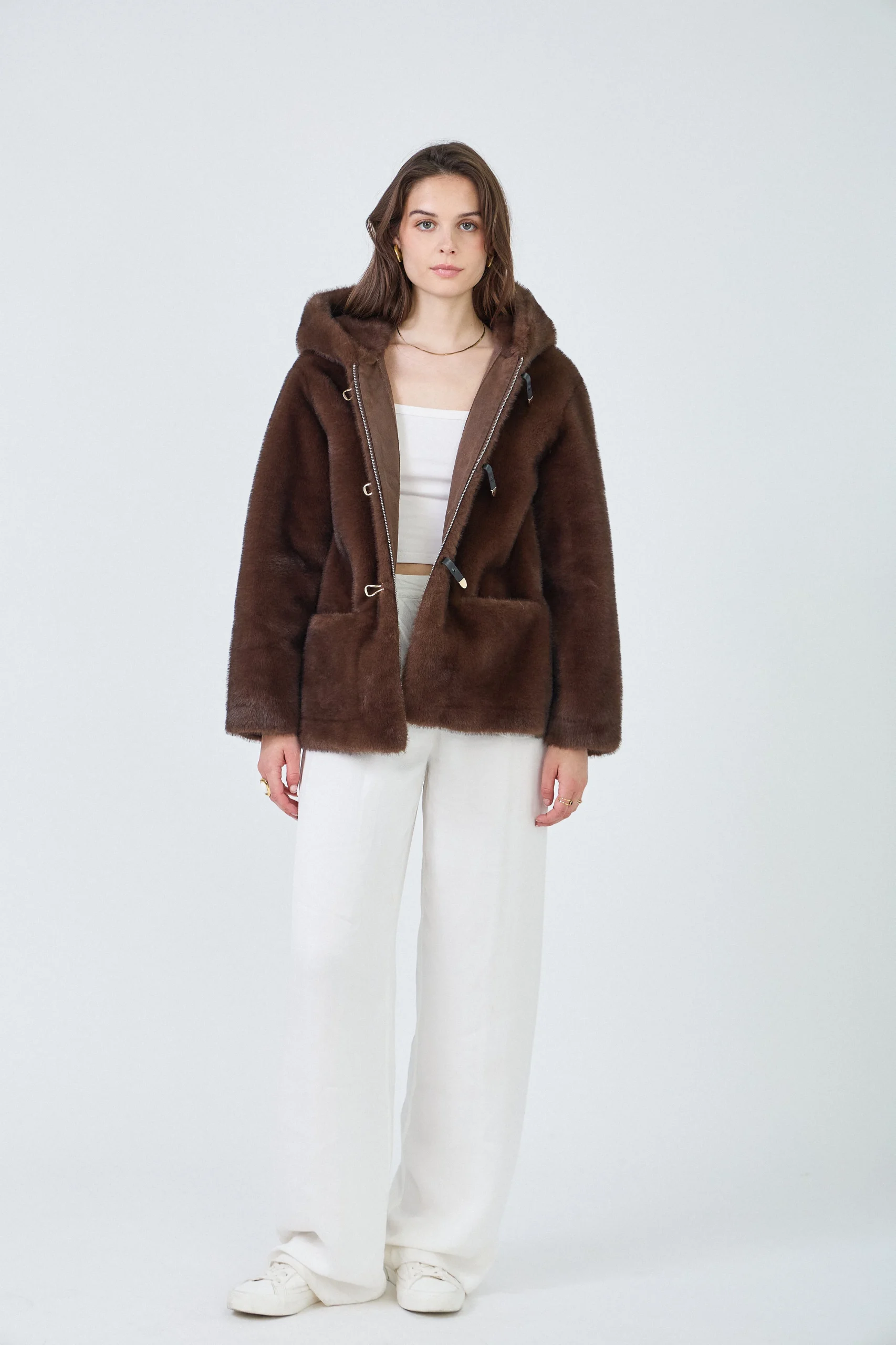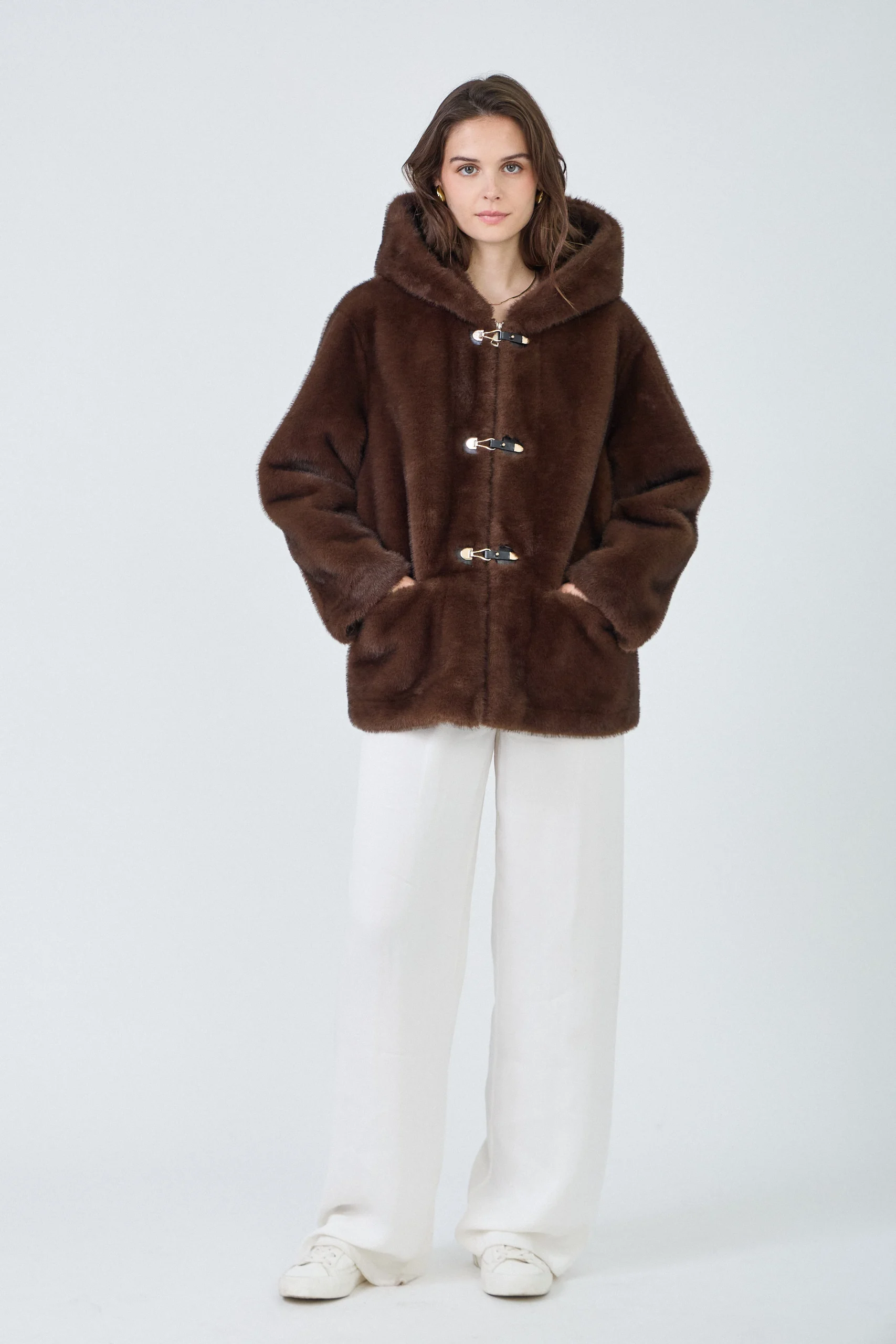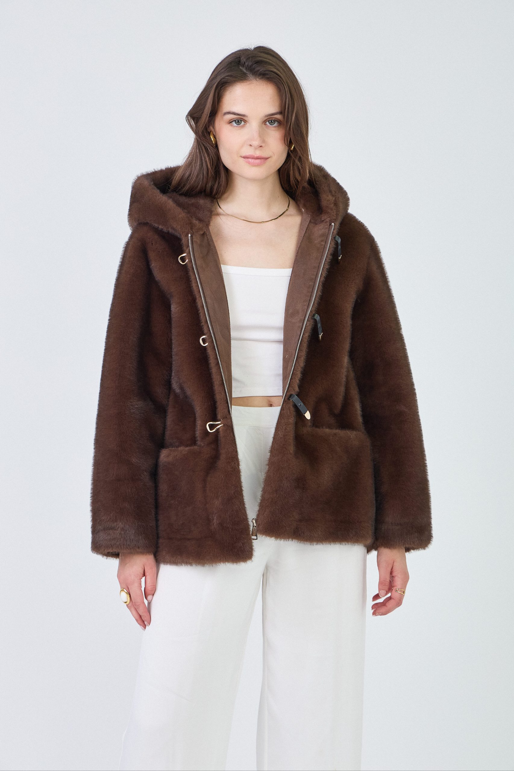 INAYA – Veste à capuche en fausse fourrure