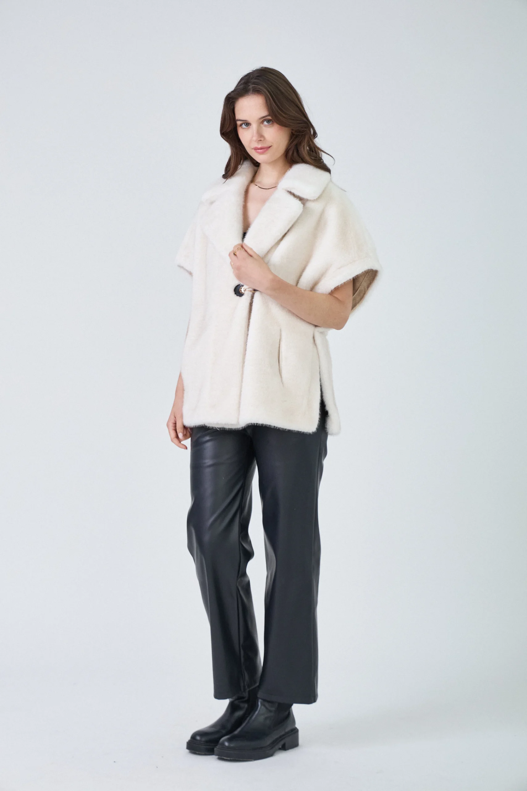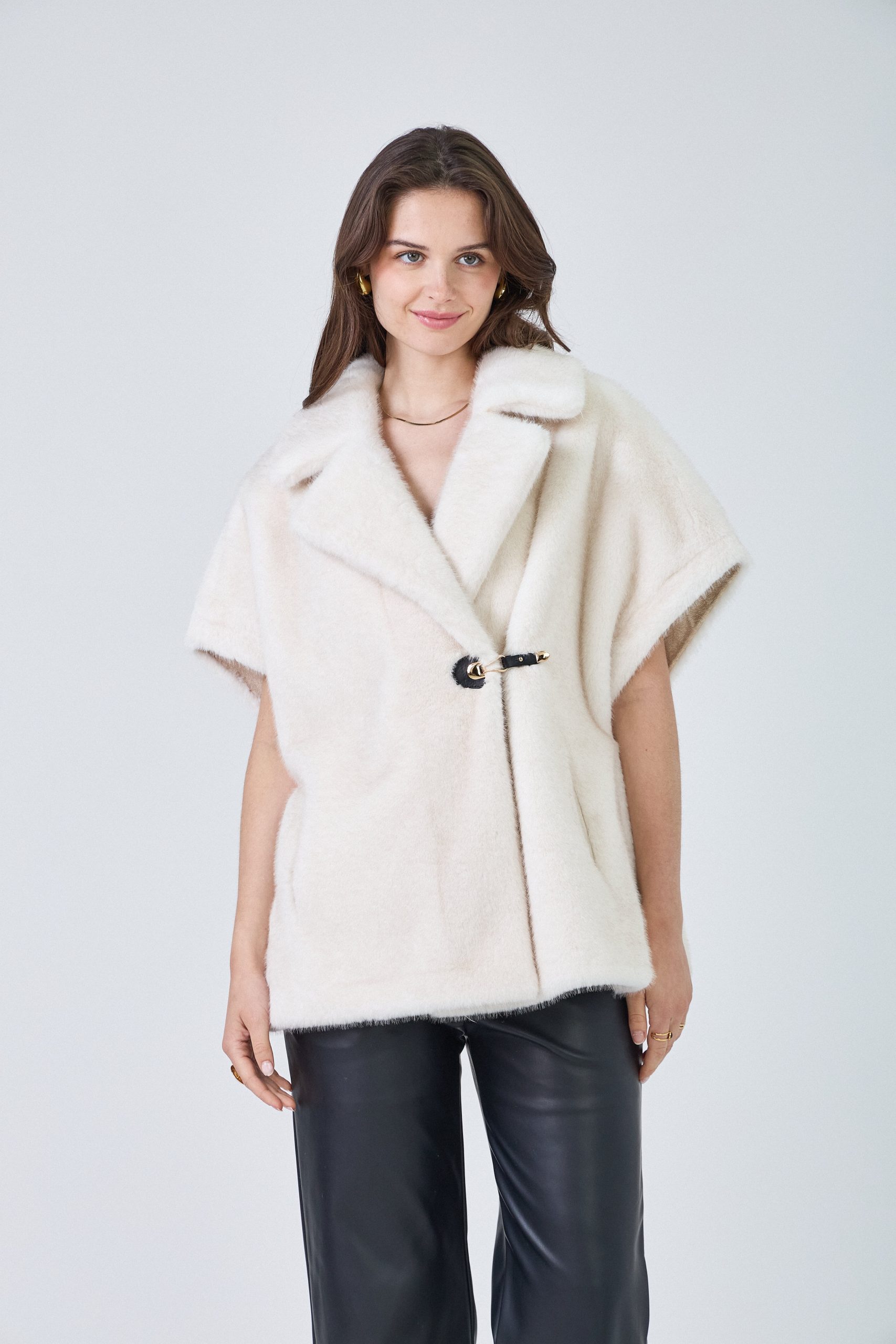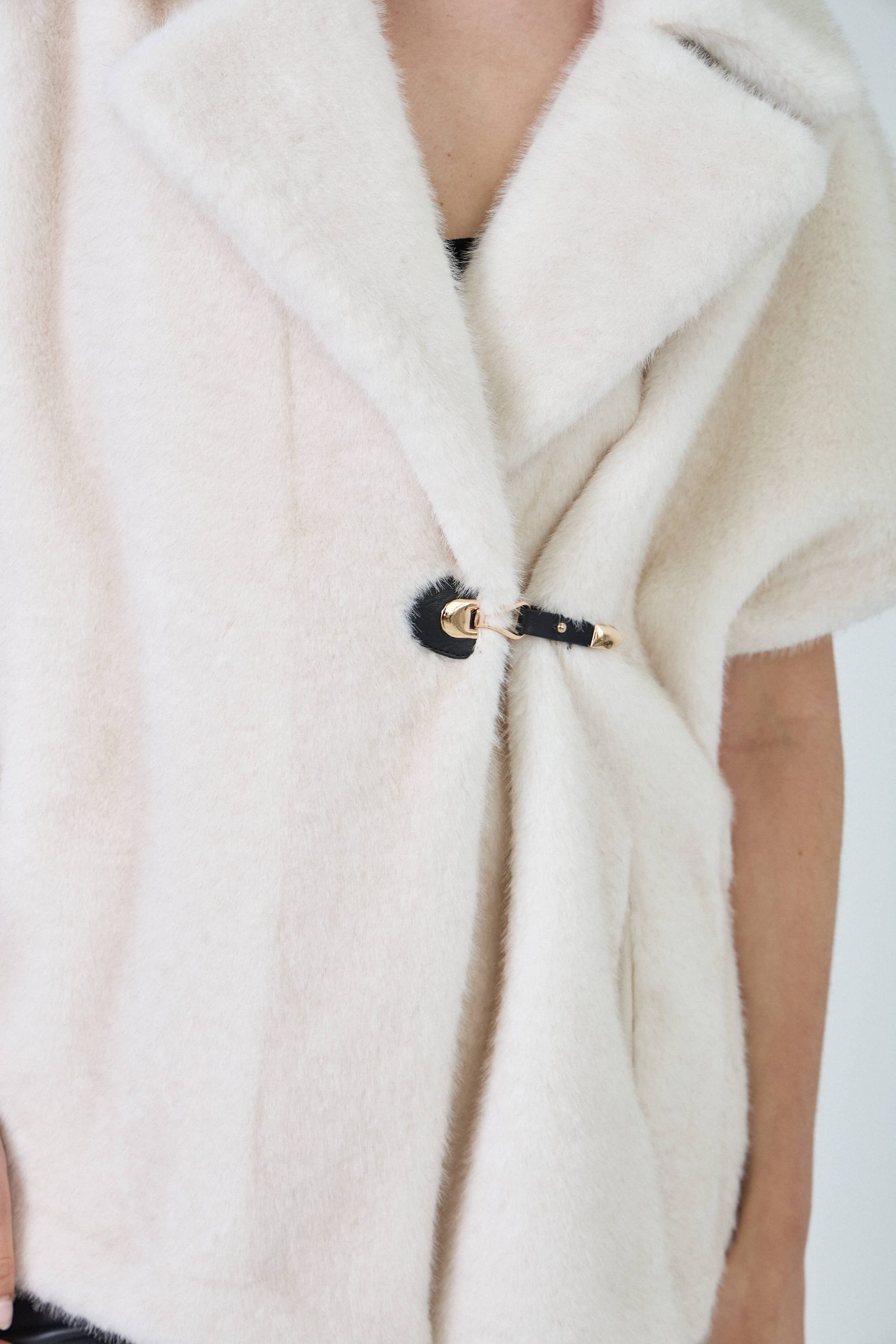 Le gilet Jackie apporte une touche chic et rétro à votre silhouette grâce à sa texture luxueuse et sa coupe structurée. Détails produit : Fermeture par crochets invisibles Col montant doux Manches courtes Coupe droite courte Tailles disponibles : S/M, M/L